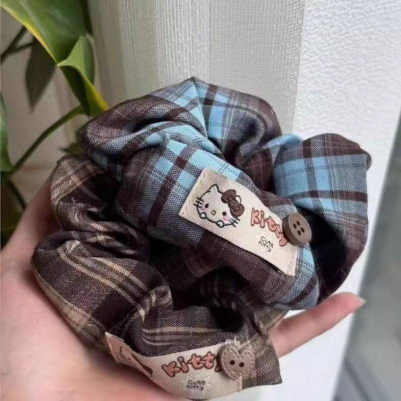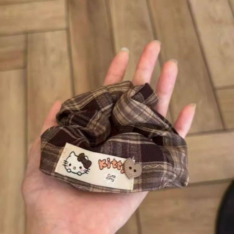 大肠发圈韩系复古学院风格纹kitty可爱格纹秋冬软糯百搭发绳