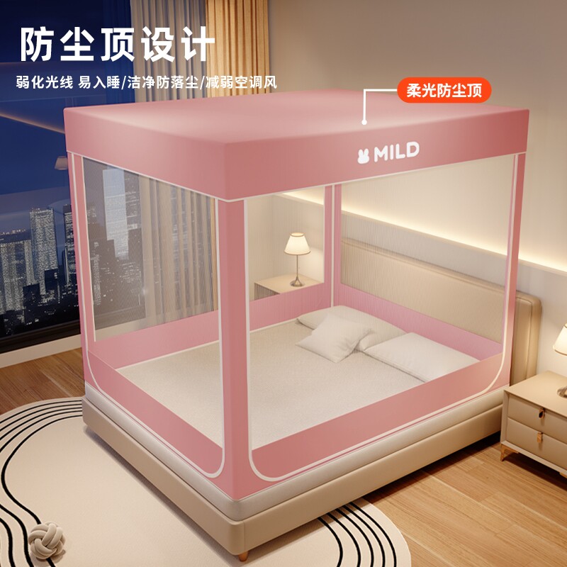 家用卧室防摔蚊帐床笠款2025新款免安装蒙古包婴儿纹账遮光床单