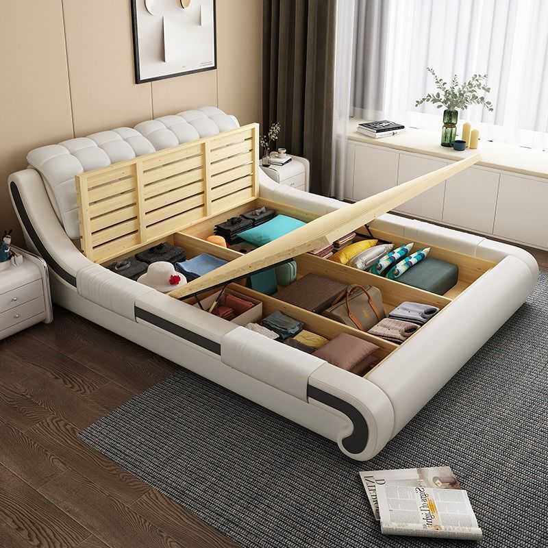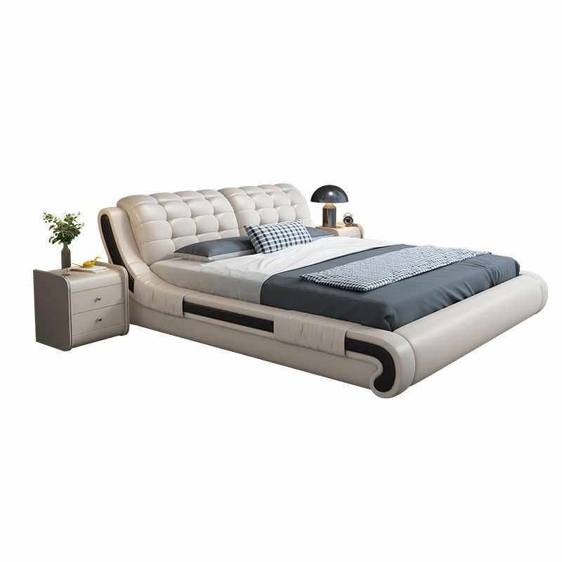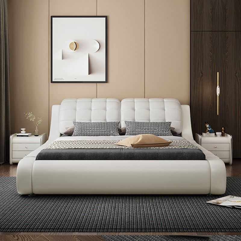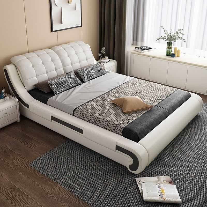 现代皮床真皮床双人床1.8米现代简约主卧床婚床北欧式1.5米皮艺床