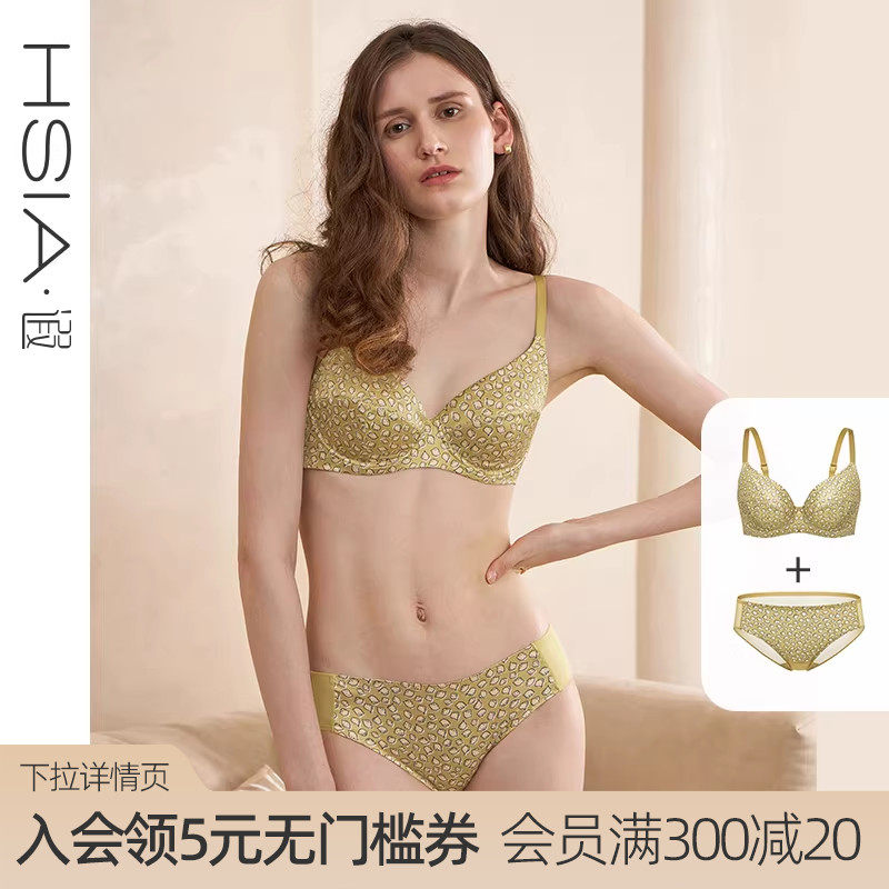 【花瓣内衣】爱慕丝路花雨女大胸显小无钢圈小胸聚拢文胸内裤套装