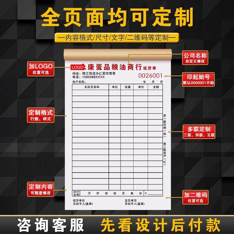 【粮油批发店专用】送货单大米开单本干货食品调味品销售销货清单