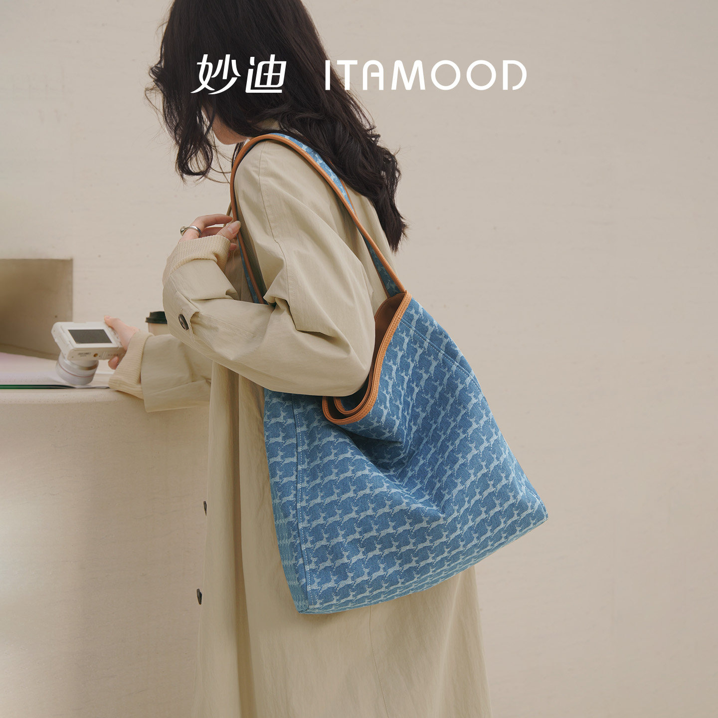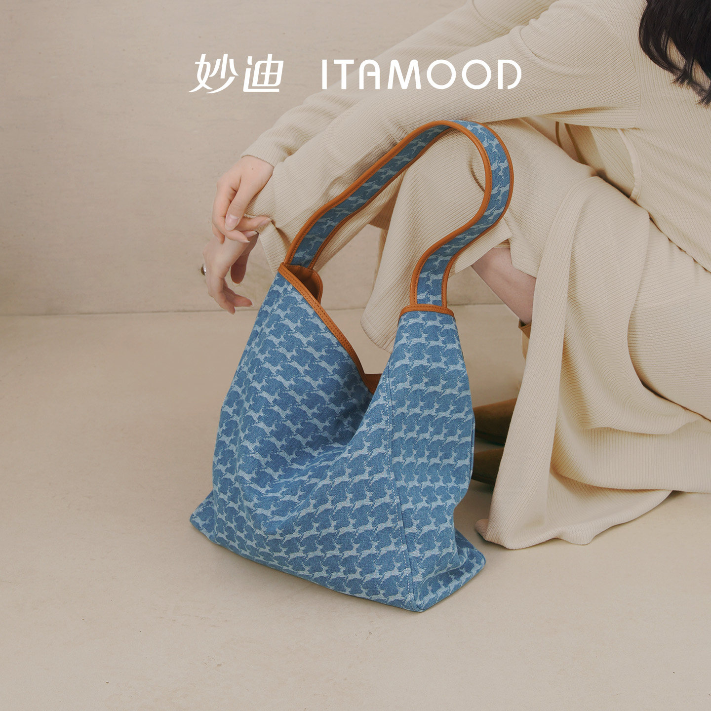 妙迪托特包新复古炭黑牛仔帆布包松弛大容量轻软包包腋下单肩包女