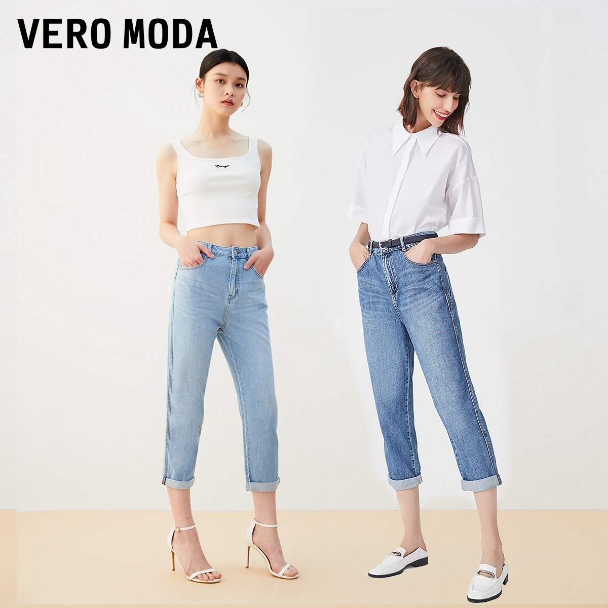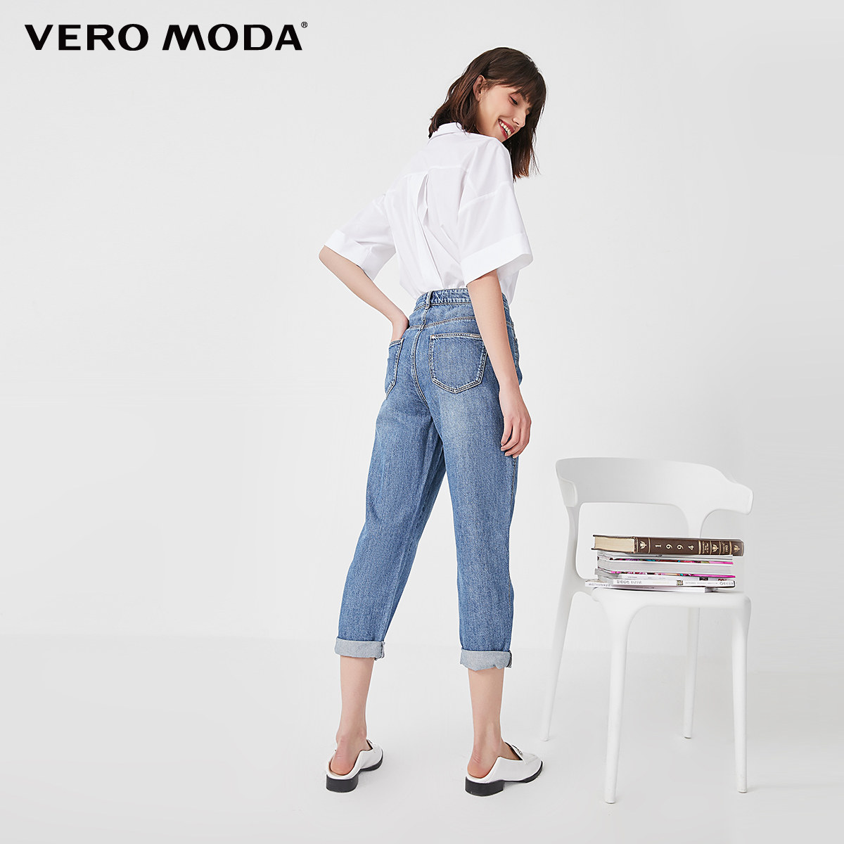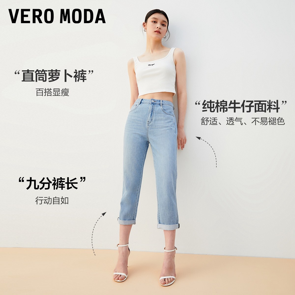 Vero Moda奥莱牛仔裤女秋冬清仓纯棉直筒宽松九分百搭萝卜裤流行