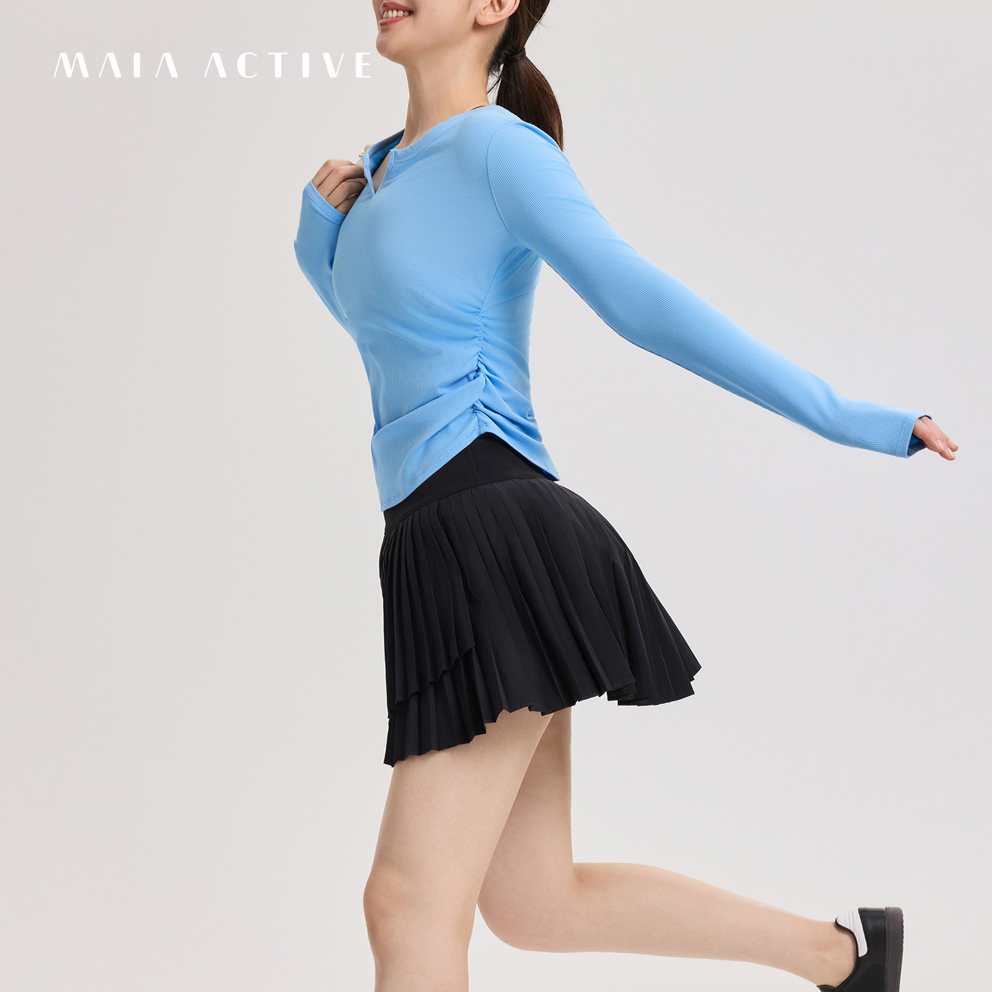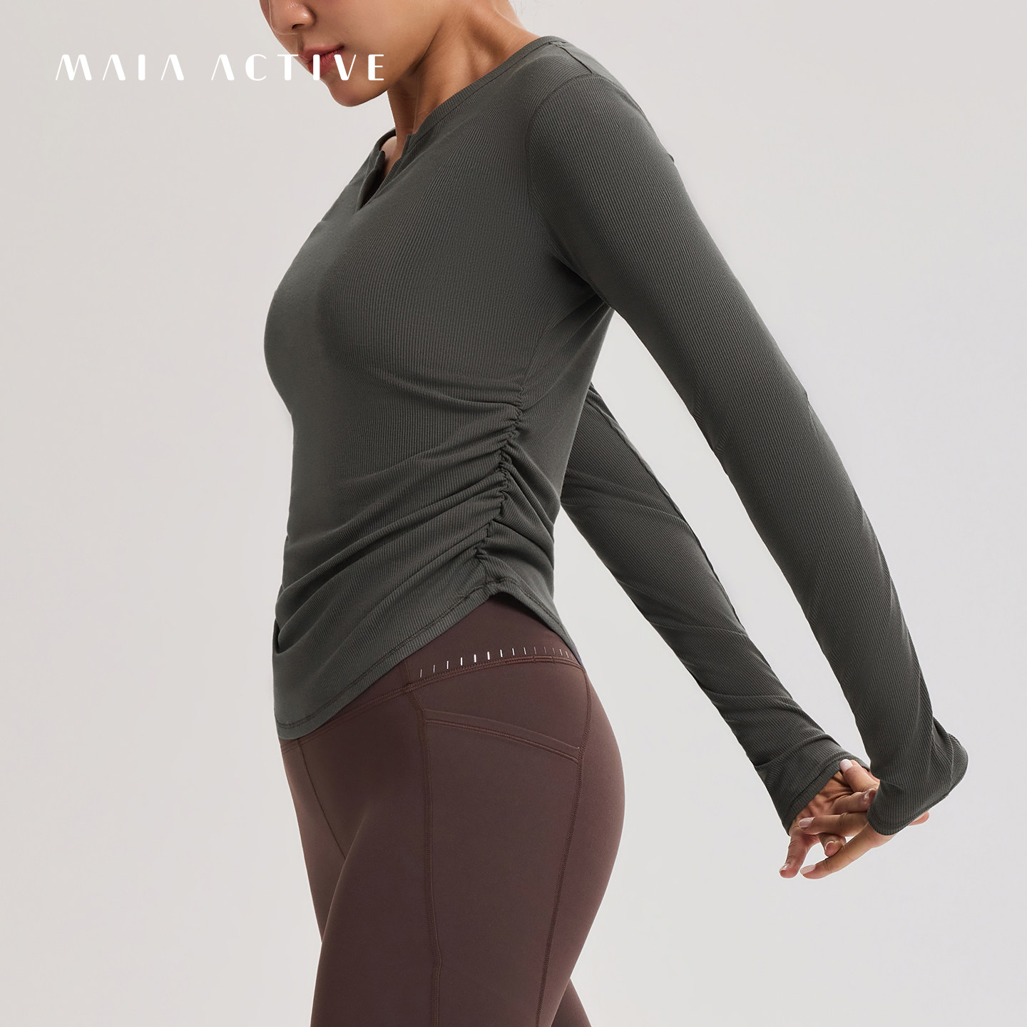 莫代尔Rib长袖TEE运动休闲T恤健身衣瑜伽上衣女MAIAACTIVE 53TL29