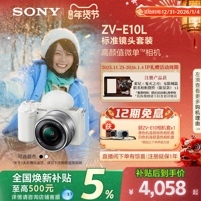 【全国补贴】索尼ZV-E10L新升级半画幅微单 美肤拍照 zve10