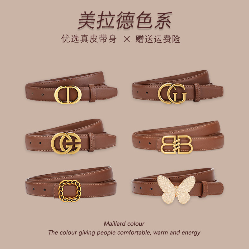 美拉德穿搭腰带女士真皮装饰百搭高级感焦糖色棕色皮带牛仔裤带潮