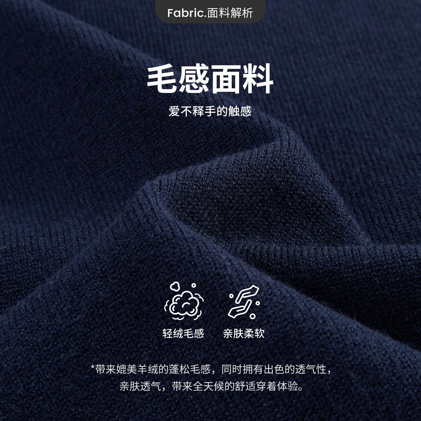 森马毛衫男冬季含羊绒针织衫发热抑菌2025新款基础圆领黑色打底衫