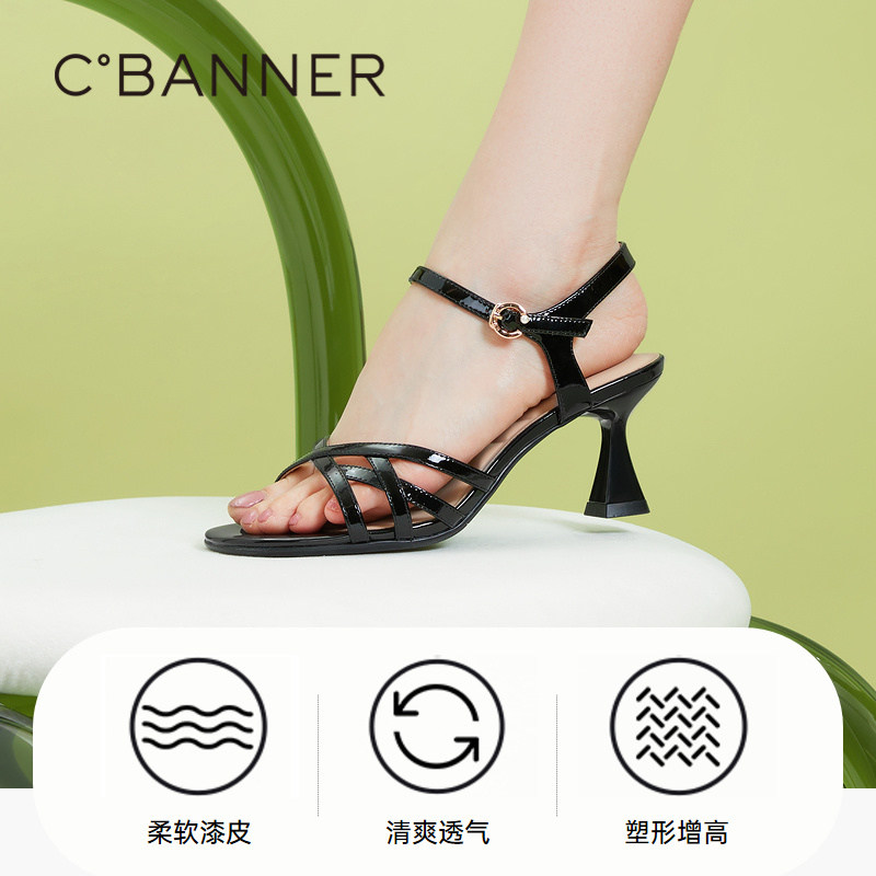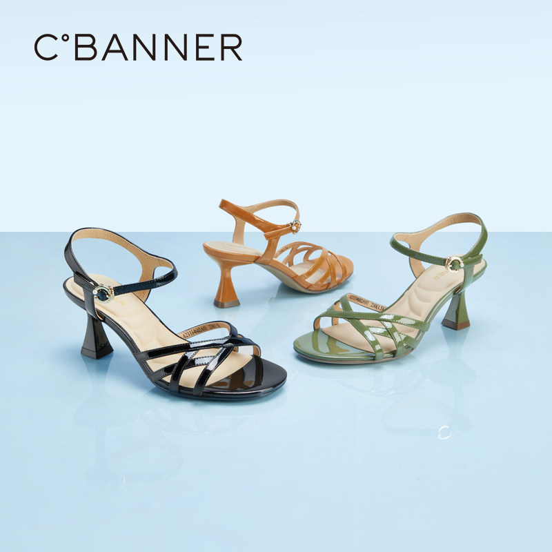 千百度女鞋夏季新款时装凉鞋上班高跟鞋真皮鞋跟一字带百搭