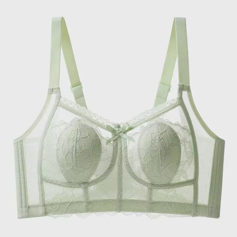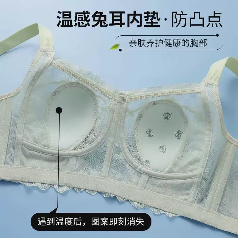 收副乳兔耳朵内衣女薄款大胸显小全罩杯夏季防下垂文胸蕾丝显大码