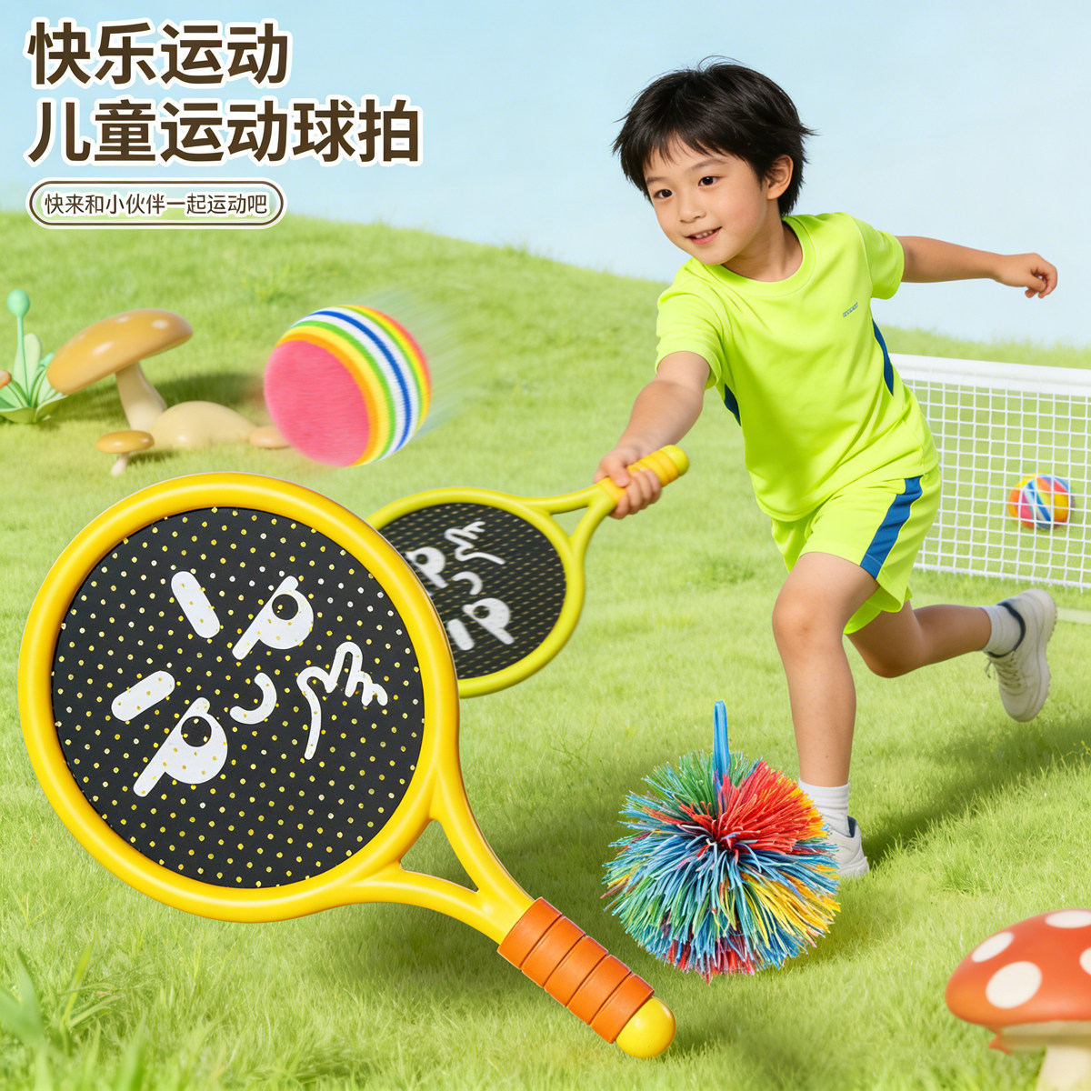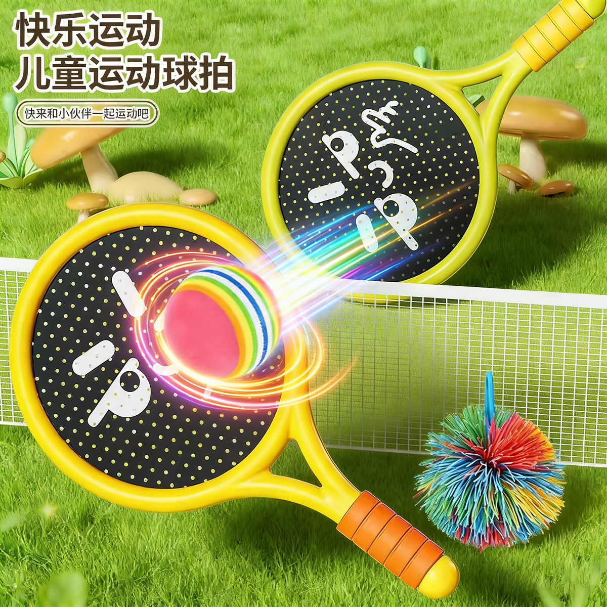 儿童羽毛球拍户外训练弹弹球亲子互动静音运动网球拍益智健身室内