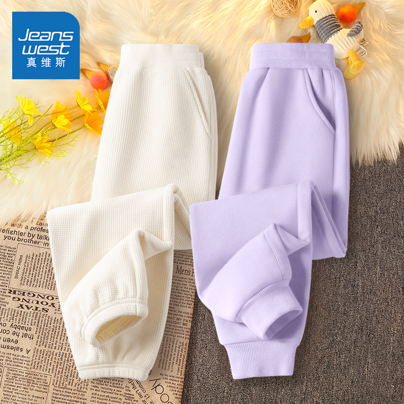 真维斯女童加绒裤子秋冬款2025新款冬装大童华夫格长裤儿童运动裤
