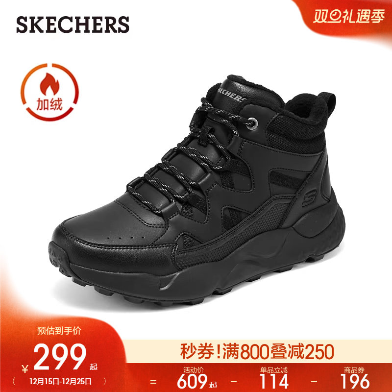 斯凯奇2025冬季新款男子加绒高帮靴舒适休闲运动鞋厚底户外雪地靴
