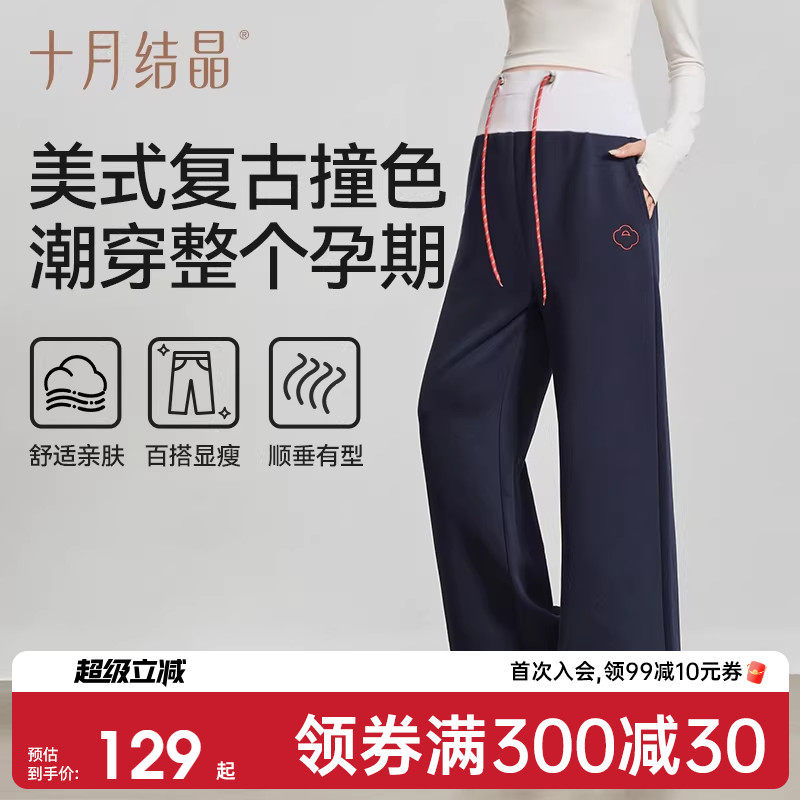 十月结晶孕妇裤子外穿不勒肚子阔腿裤2025新款冬季运动休闲裤卫裤
