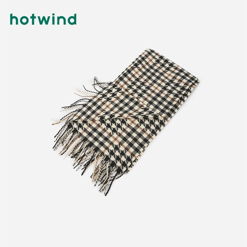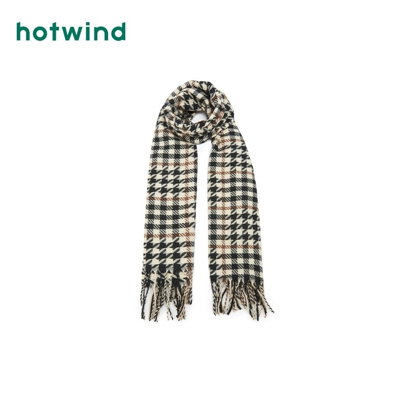热风秋冬季新款女士经典千鸟格围巾韩系时尚毛边复古保暖围巾