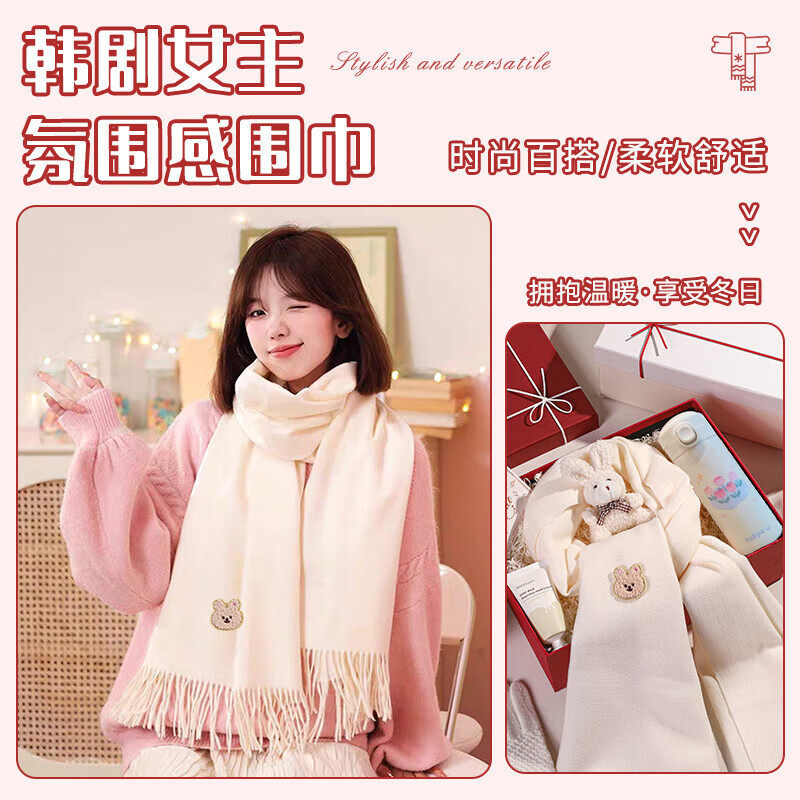围巾女士秋冬新款披肩围脖礼盒生日礼物送高级小众实用白色兔子