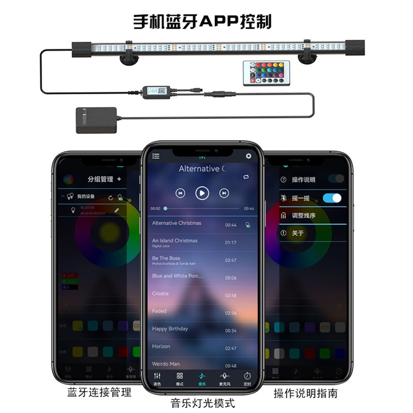 三排高亮LED鱼缸灯防水增艳龙鱼专用灯管水草 水族箱顶灯七彩变色