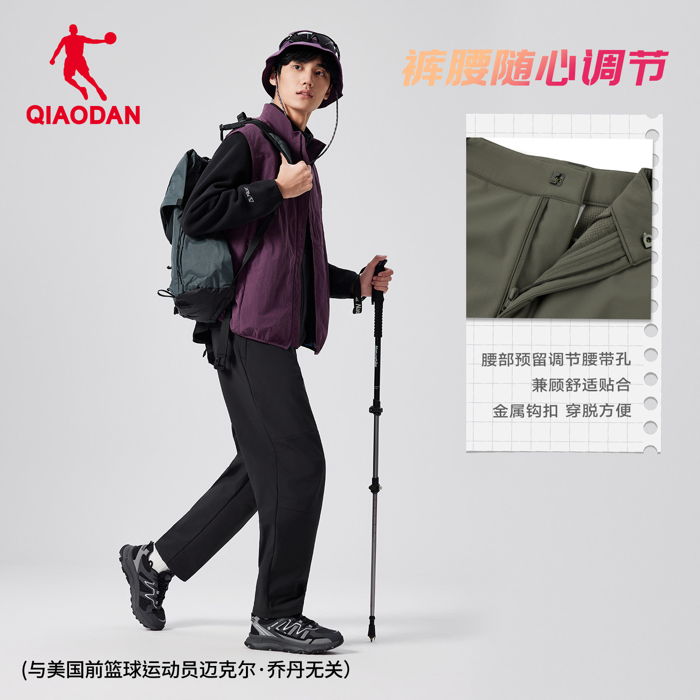 乔丹户外加绒防泼水长裤男生2025冬季新款梭织冲锋登山裤子平口
