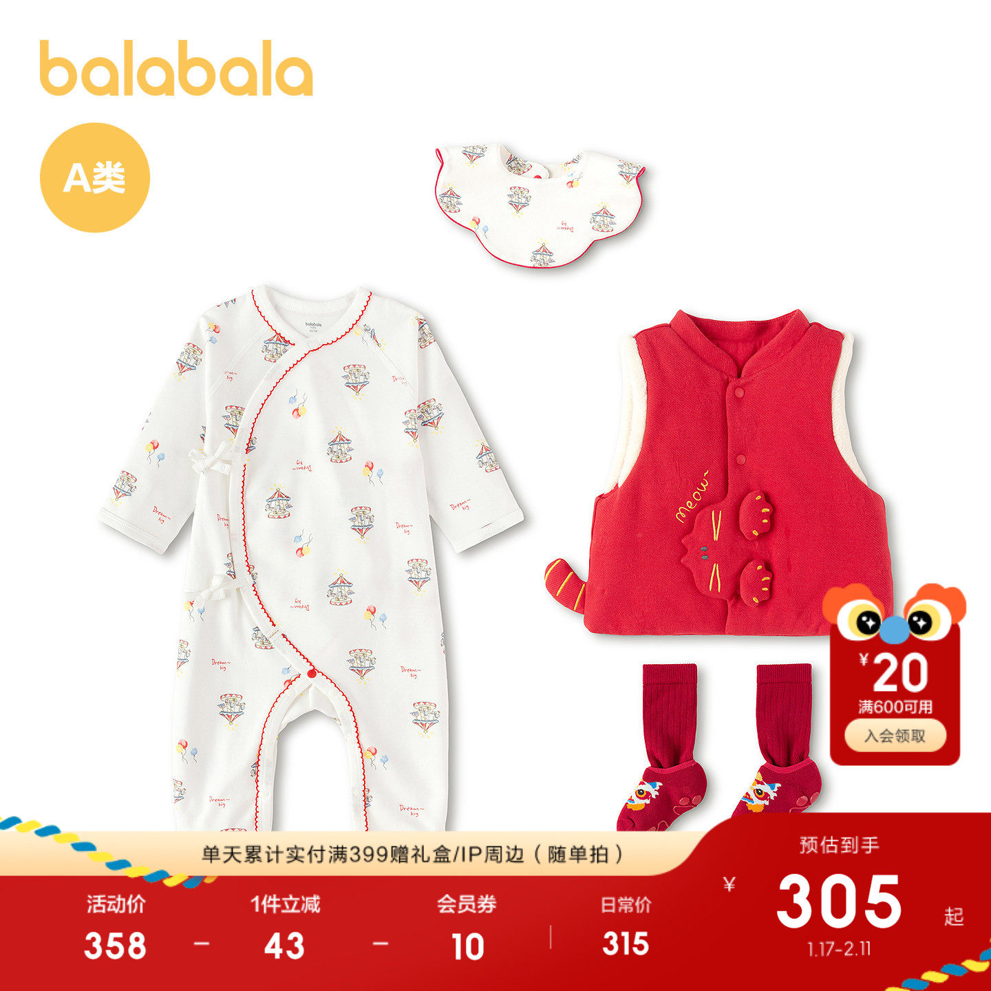 【商场同款】巴拉巴拉新生儿礼盒宝宝满月用品大全四件红色拜年服