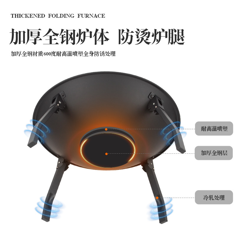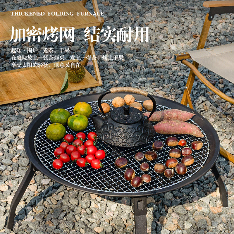 疆屿户外庭院烧烤炉新款折叠室内取暖火盆烤火炉加厚篝火盆围炉
