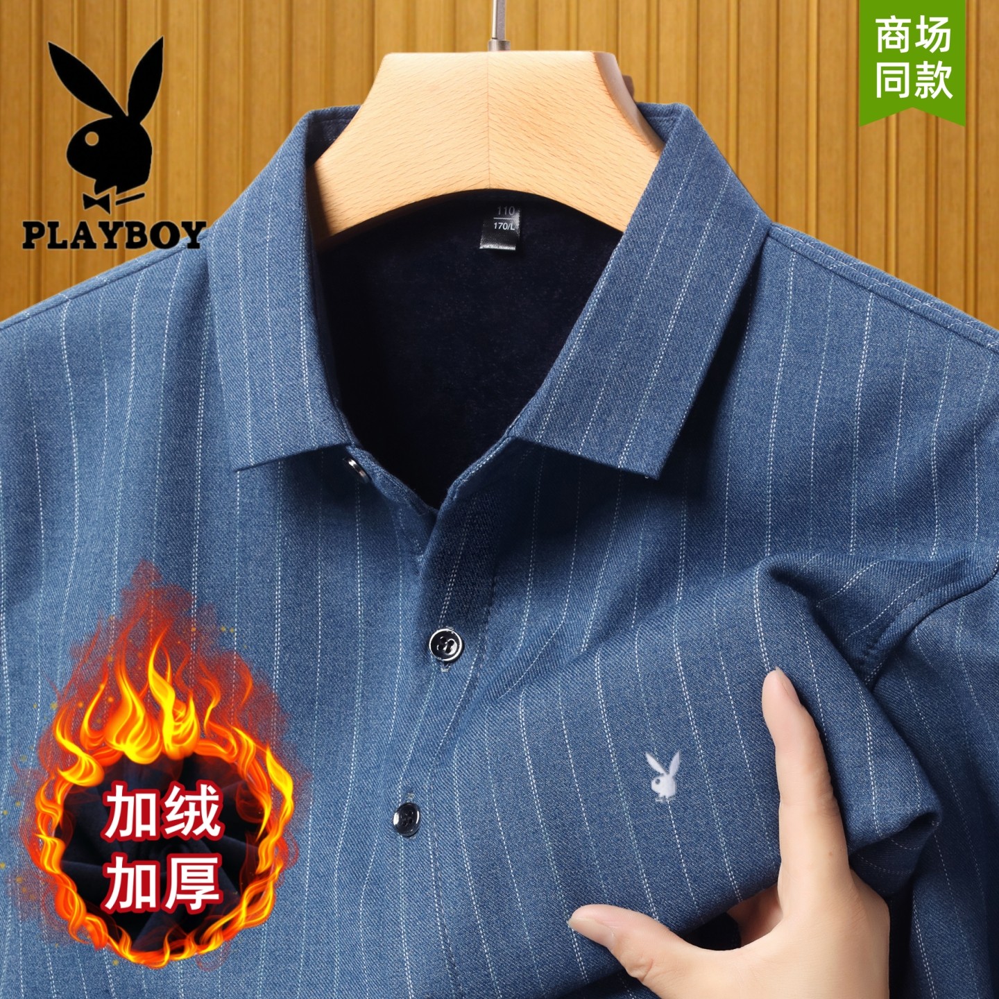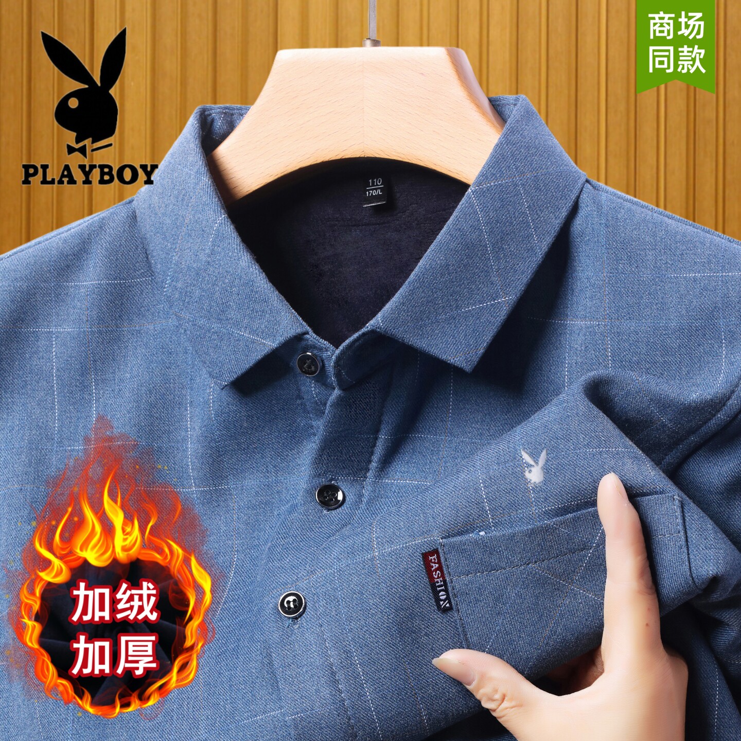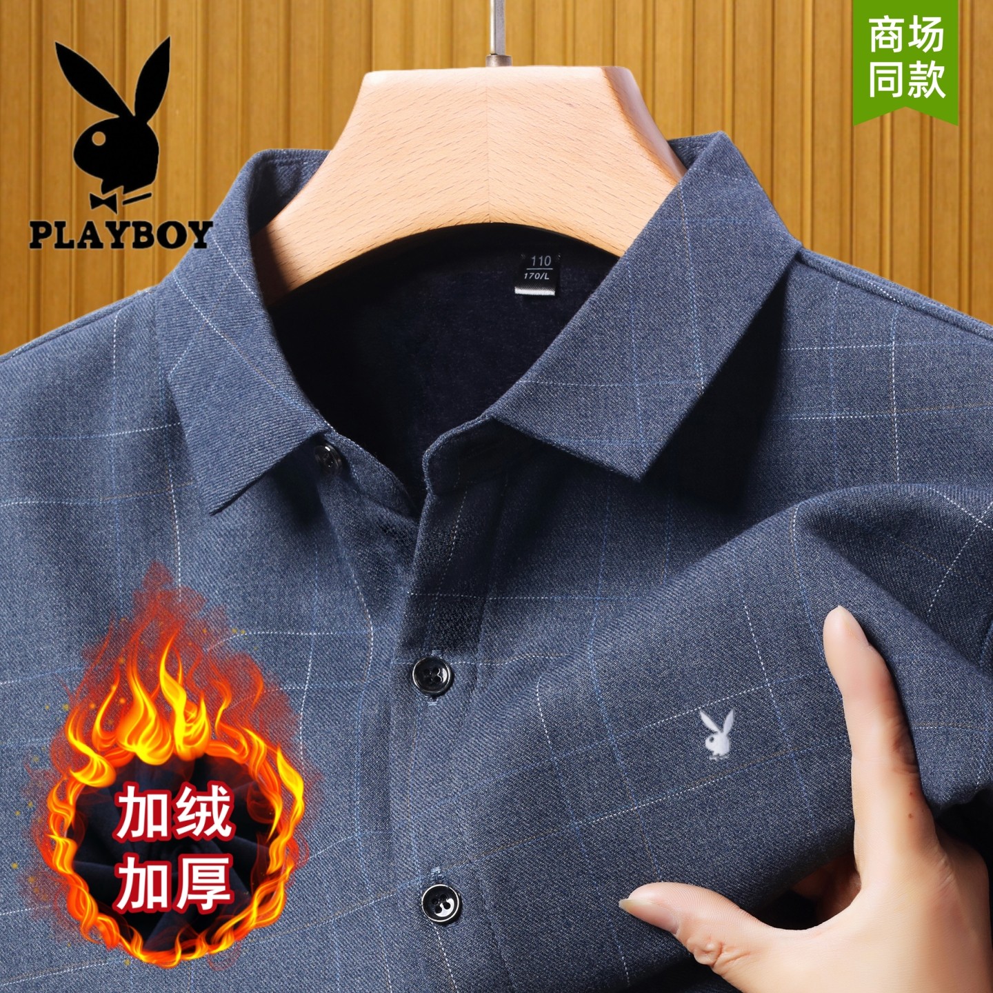 衬衣男2025新款花花公子保暖衬衫一体加绒加厚中年爸爸装冬天衣服