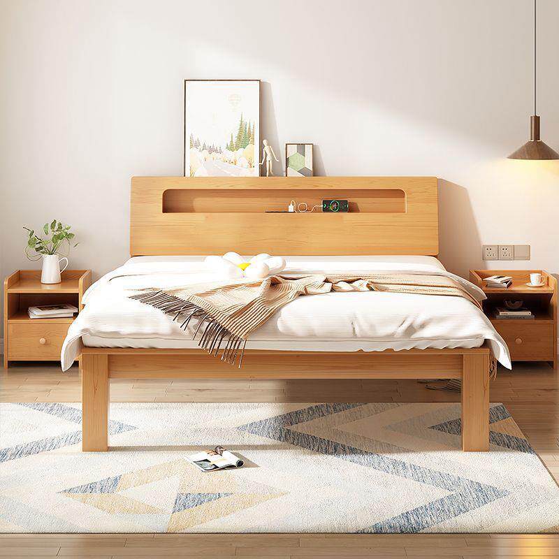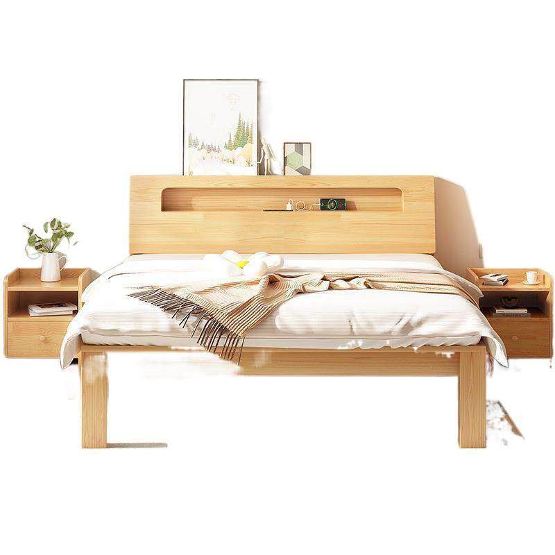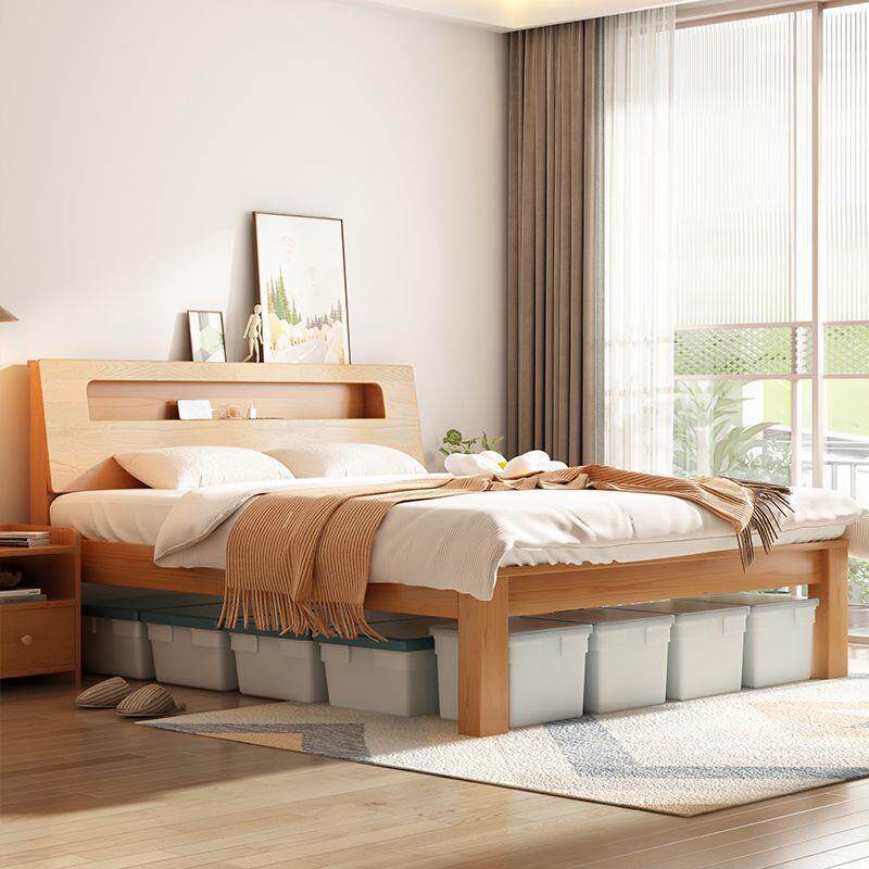 实木床双人床1.8米简约现代卧室高箱储物床1.5m出租屋1.0米单人床