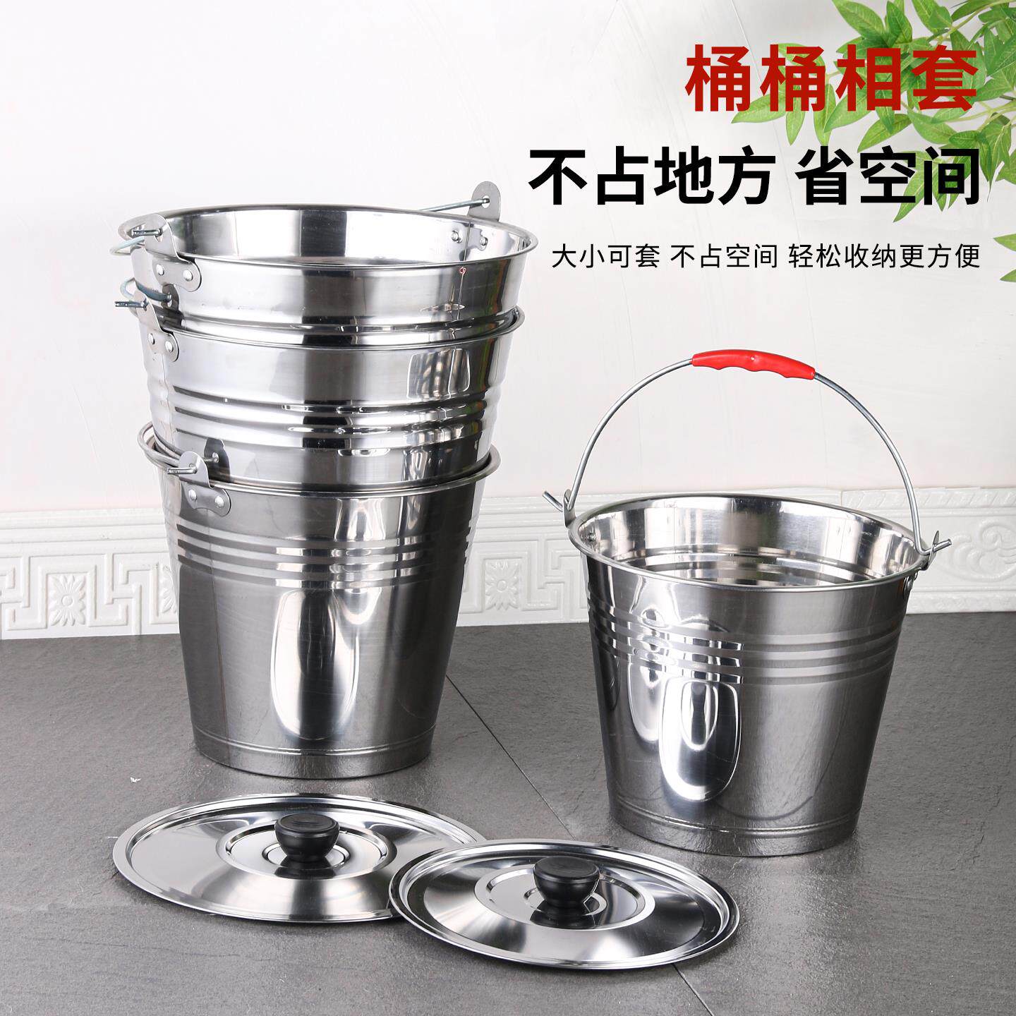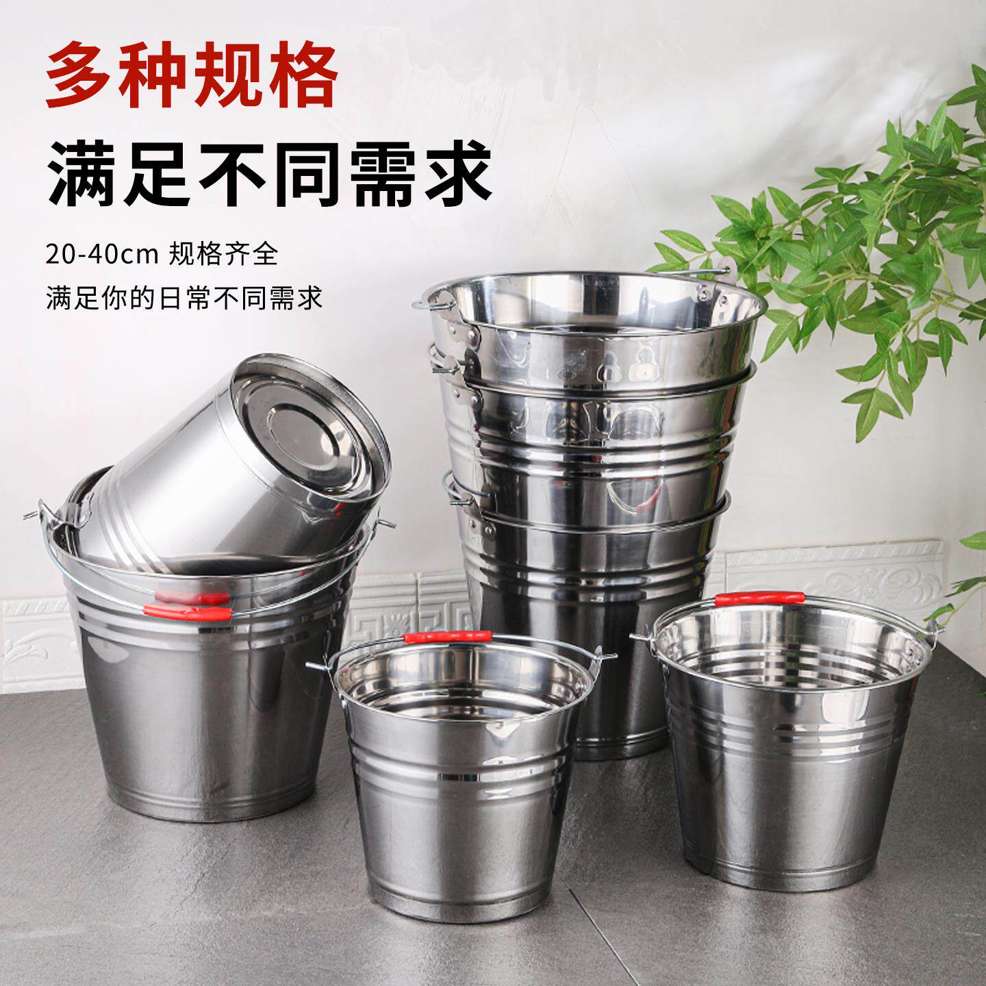 不锈钢水桶手提式冰桶幼儿园垃圾桶带盖油桶铁桶家用厨房食堂加厚