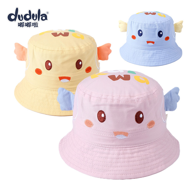 嘟嘟啦卡通婴幼儿童渔夫帽春秋男女宝宝平顶盆帽可爱防晒遮阳帽子