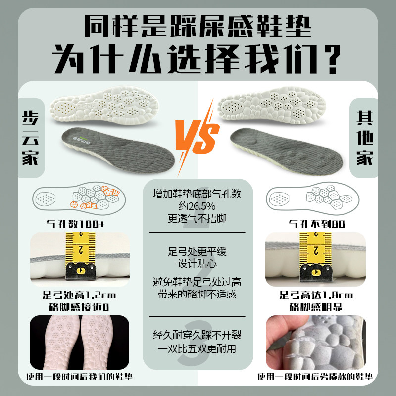 运动鞋垫软底不累脚踩屎感久站不累防痛加厚男女减震透气吸汗防臭