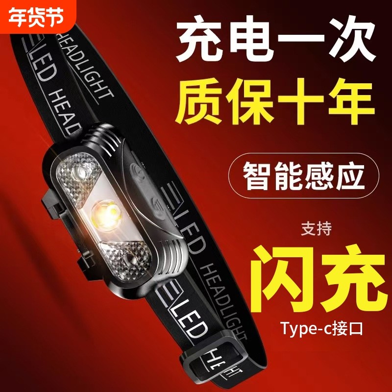 头灯强光充电超亮头戴式照明感应超长续航户外夜钓鱼专用led新款