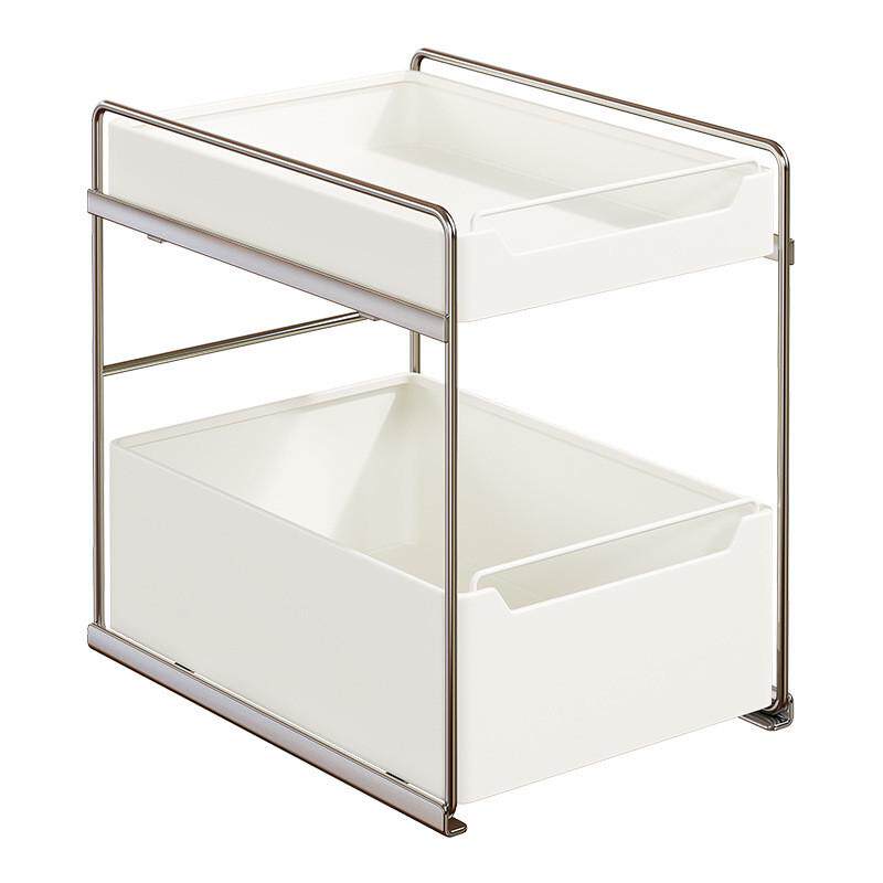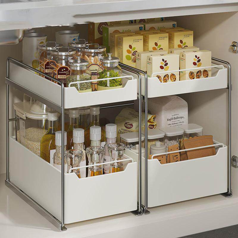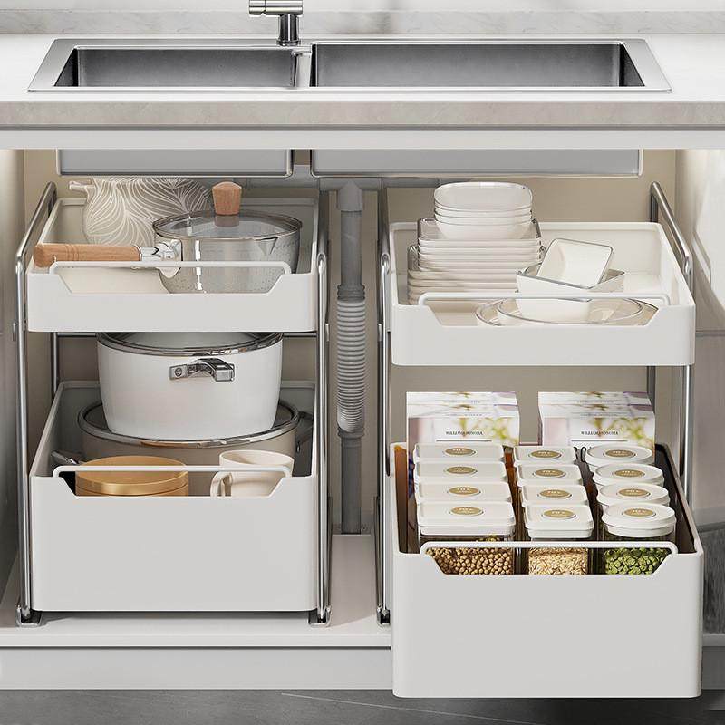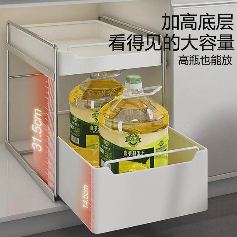热销抽拉式厨柜拉篮不锈钢厨房置物架下水槽调料瓶锅具分层收纳架