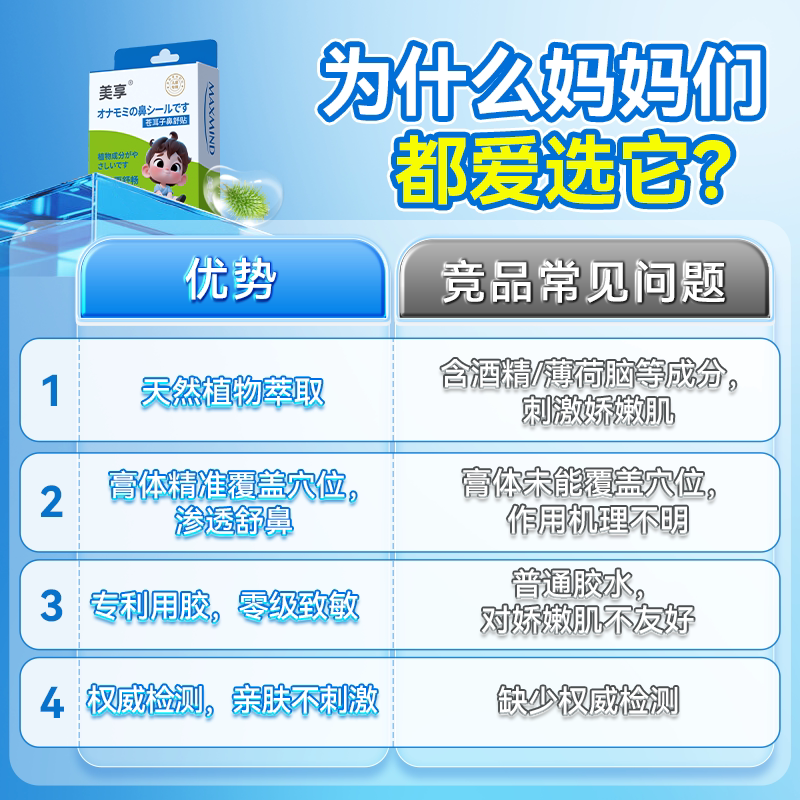 美享草本通鼻贴苍耳子鼻舒贴儿童鼻塞堵大膏体通鼻鼻贴鼻炎贴通气