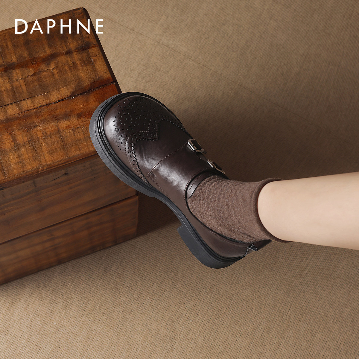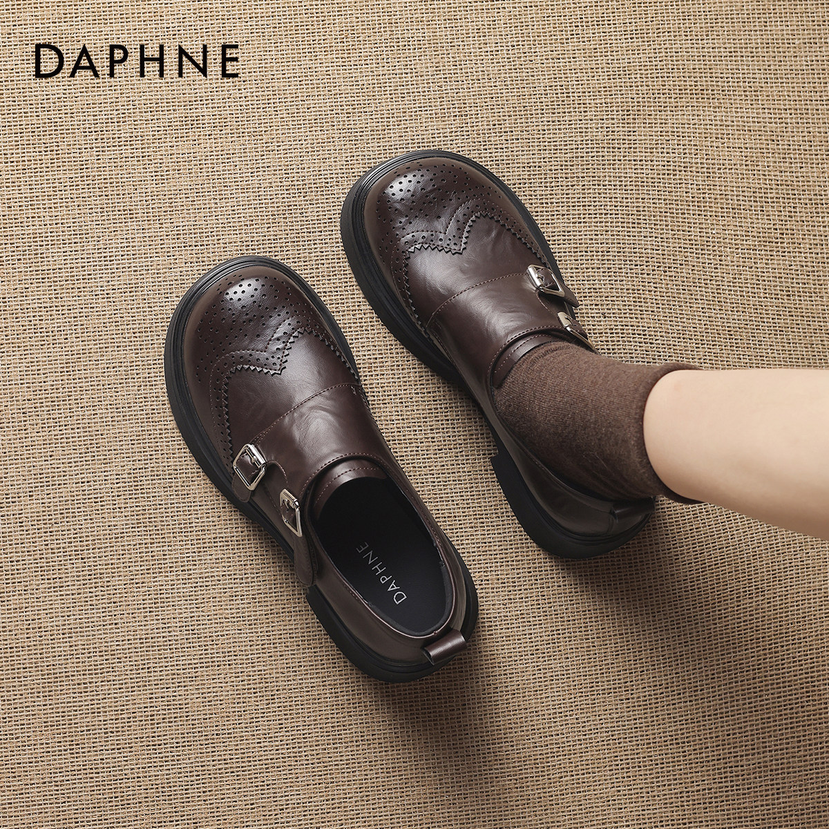 达芙妮棕色厚底乐福鞋女2026新款春季布洛克鞋子小皮鞋英伦风单鞋