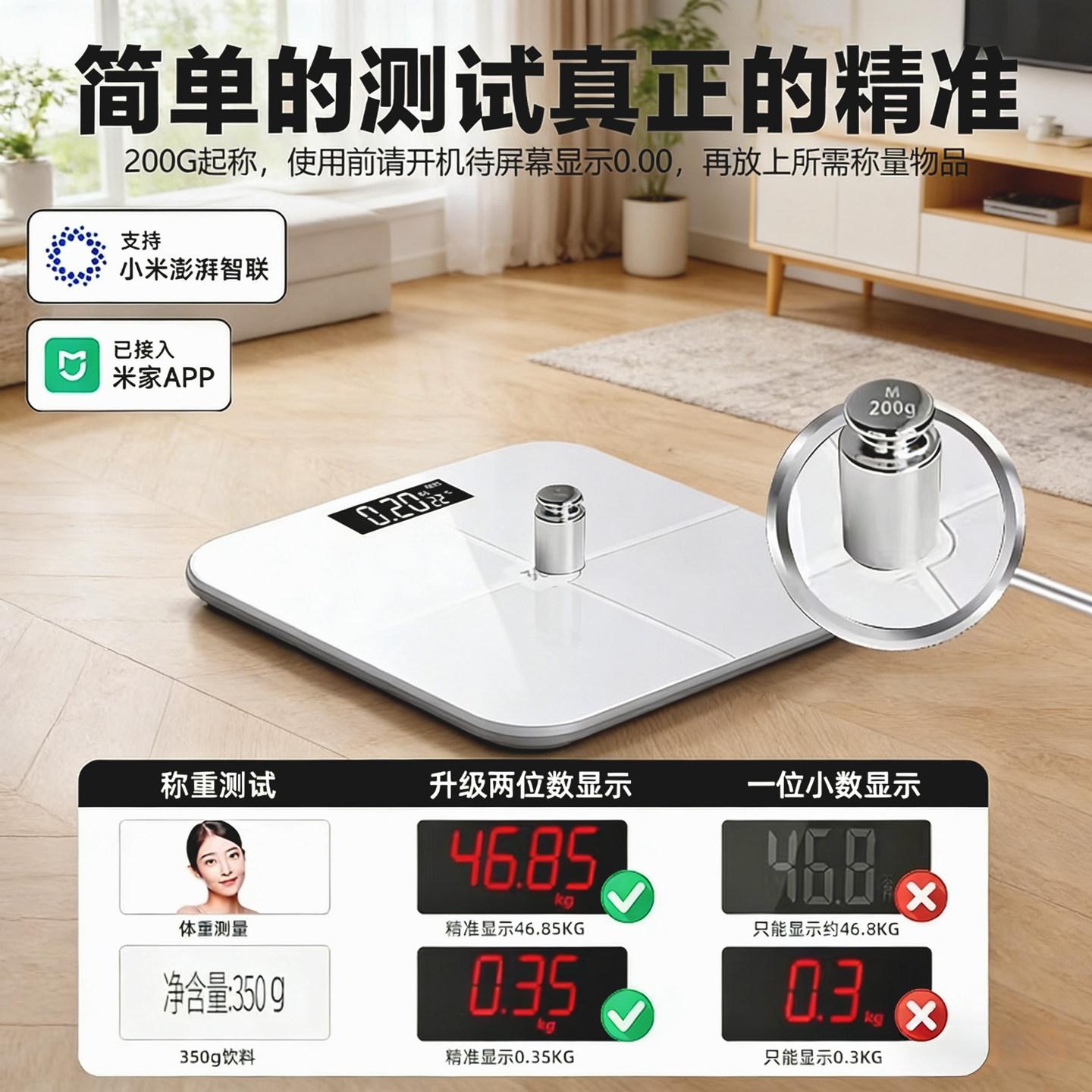 小熊体重秤家用精准电子秤智能减肥体脂秤充电婴儿孕妇称重正品称