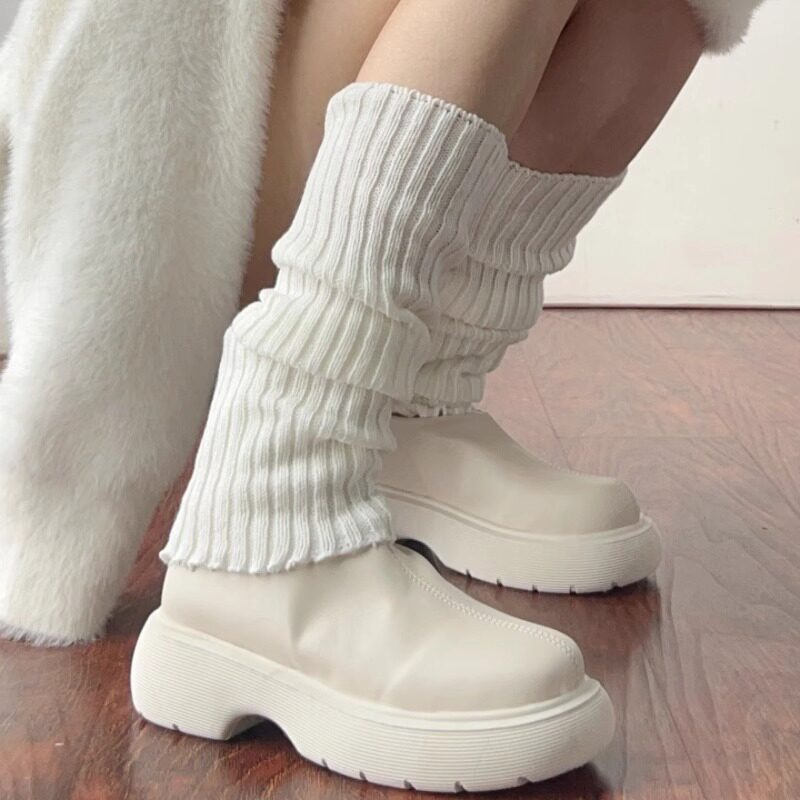 加厚针织jk袜套袜子女秋冬季白色长筒小腿袜保暖腿套Lolita堆堆袜