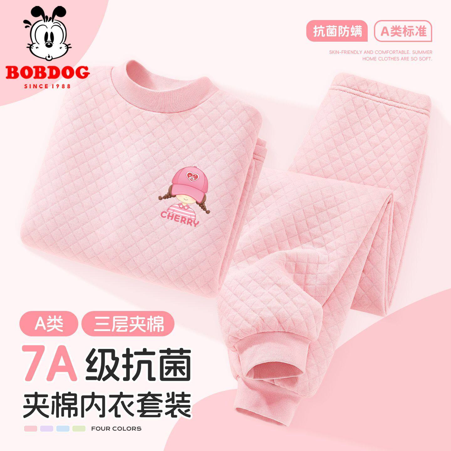 巴布豆女童秋衣秋裤纯棉a类儿童保暖套装2025冬季夹棉家居服三层