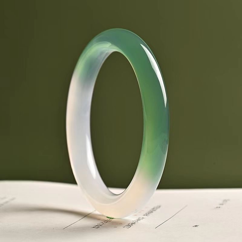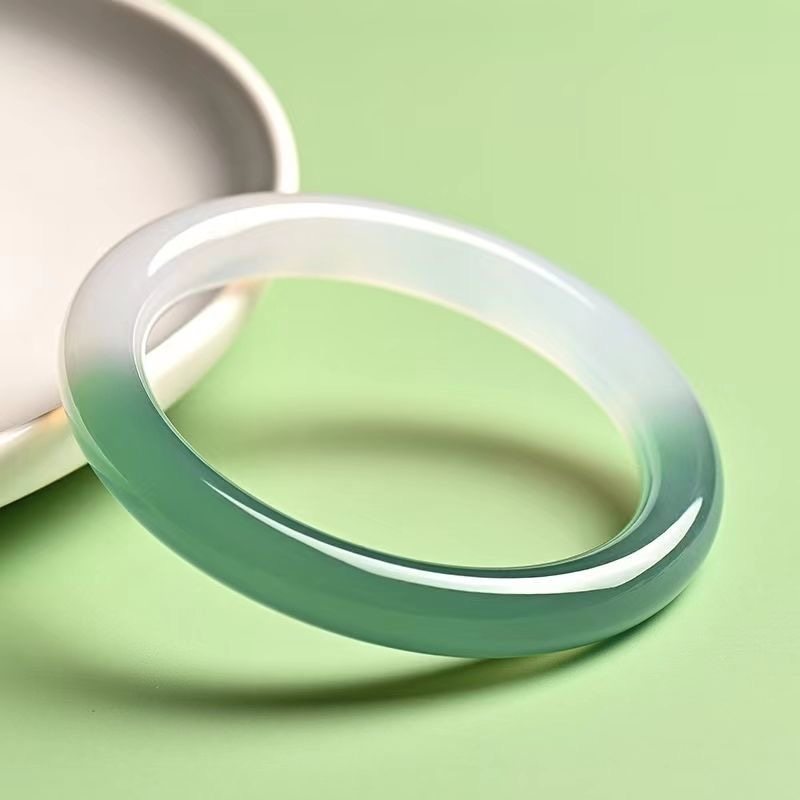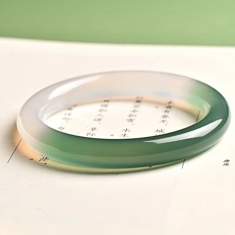 半山半水天然玛瑙手镯玉髓冰种冰透平安玉镯渐变浅绿新中式女礼物