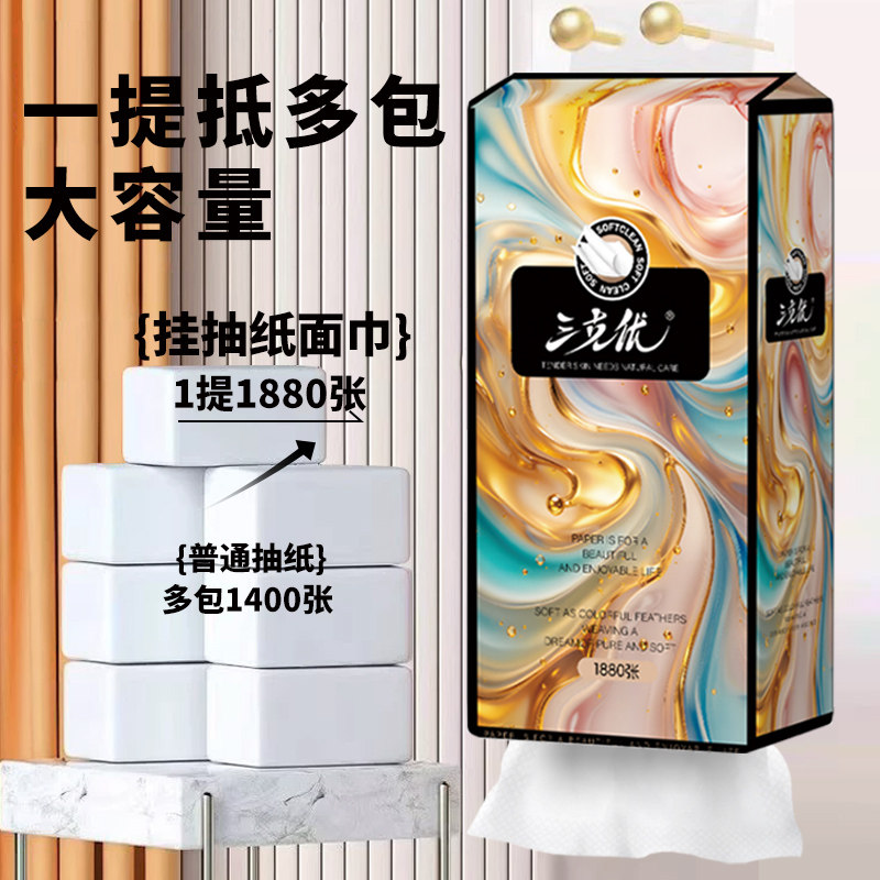 三克优悬挂抽纸376抽纸巾实惠装餐巾纸家庭装纸抽卫生纸面巾纸整
