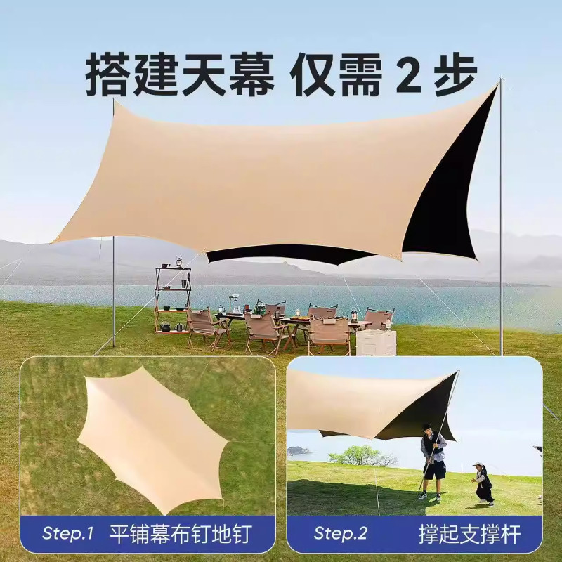黑胶天幕帐篷户外便携式露营野营全套装备加大加厚防晒速搭遮阳棚