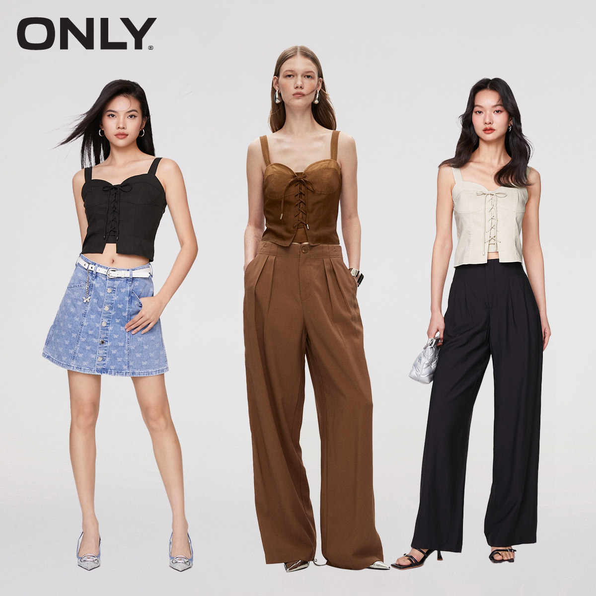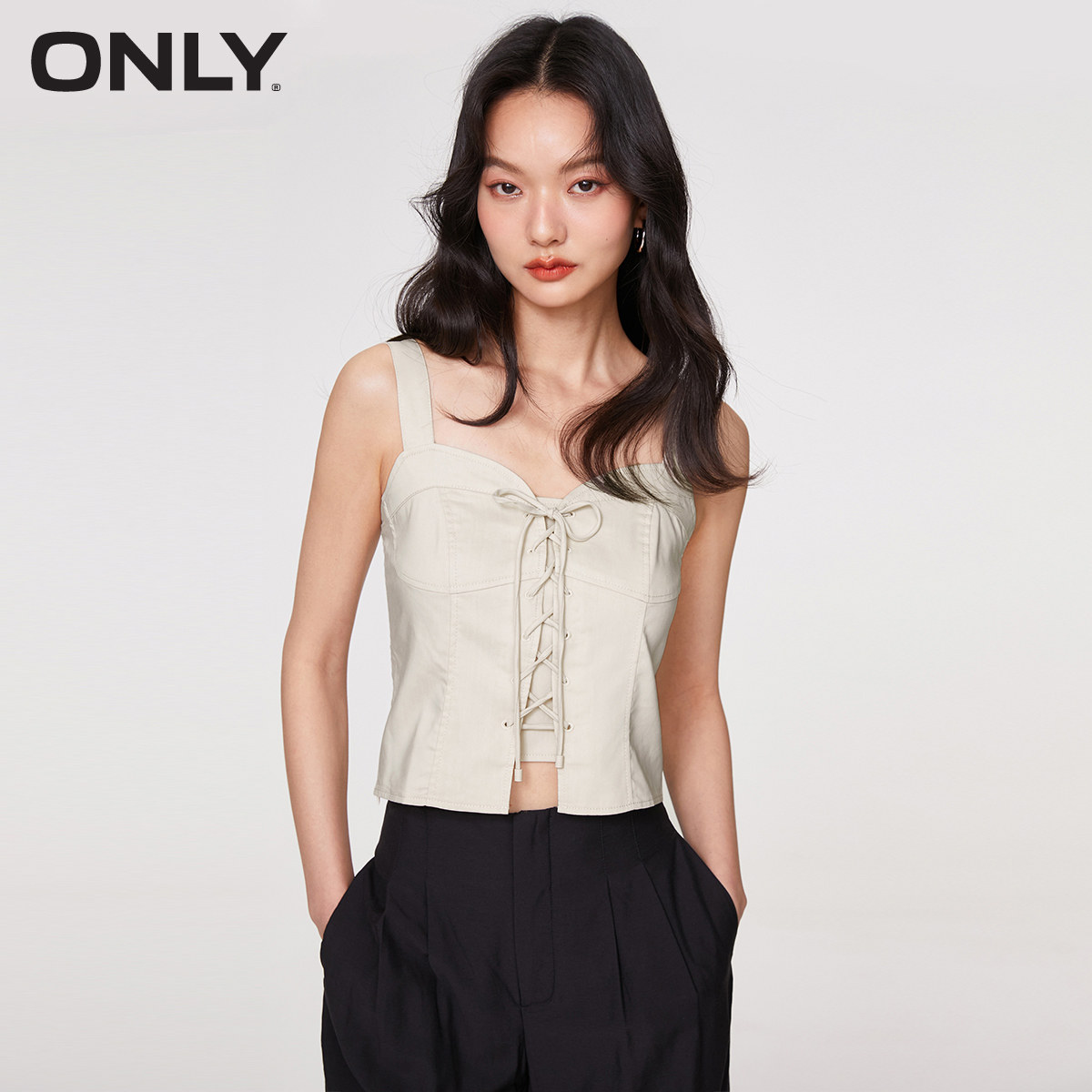 【ONLY奥莱】春夏新款时尚辣妹修身绑带短款吊带T恤女
