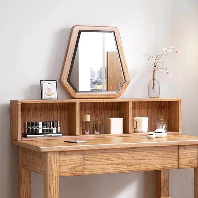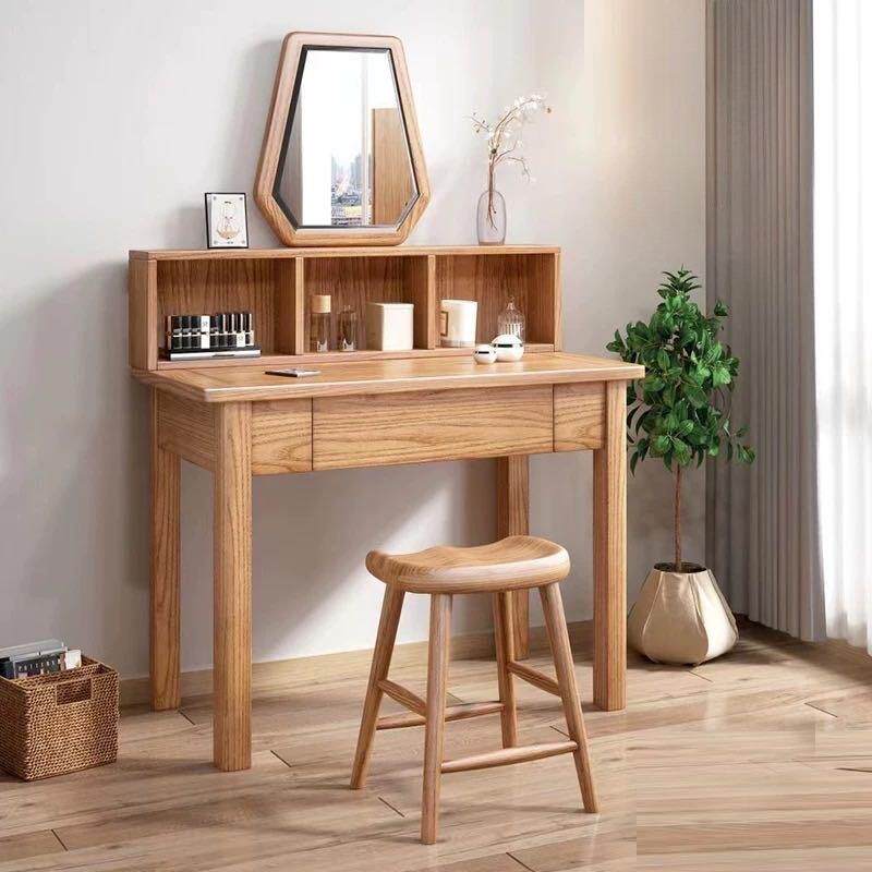 80CM红橡木梳妆台带凳带镜组合现代简约小户型卧室实木收纳化妆桌