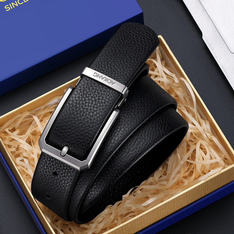 奥康男士皮带针扣时尚休闲头层牛皮新款简约百搭西裤牛仔裤腰带J