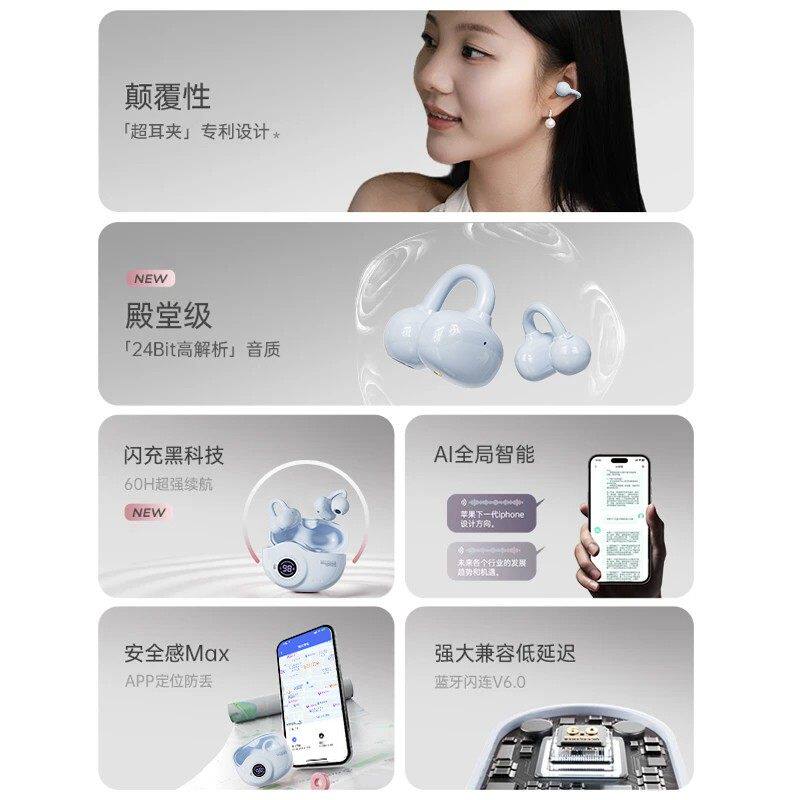 【政府补贴15%】倍思MC1耳夹蓝牙耳机2025新款AI开放式跑步运动
