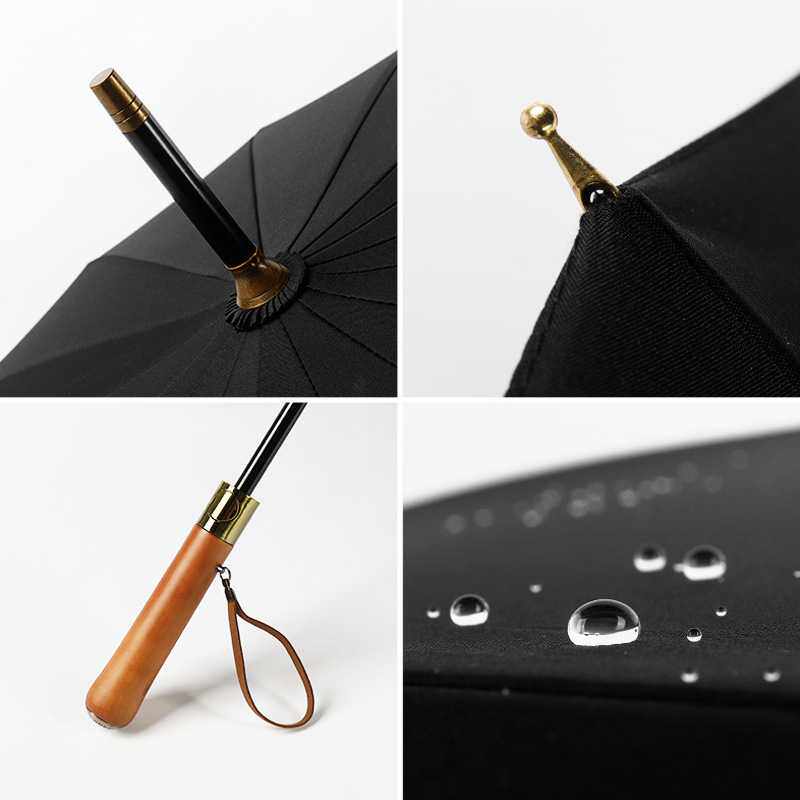 25寸实木手柄全纤维16骨莲花骨长柄雨伞自动商务直杆雨伞刻字logo