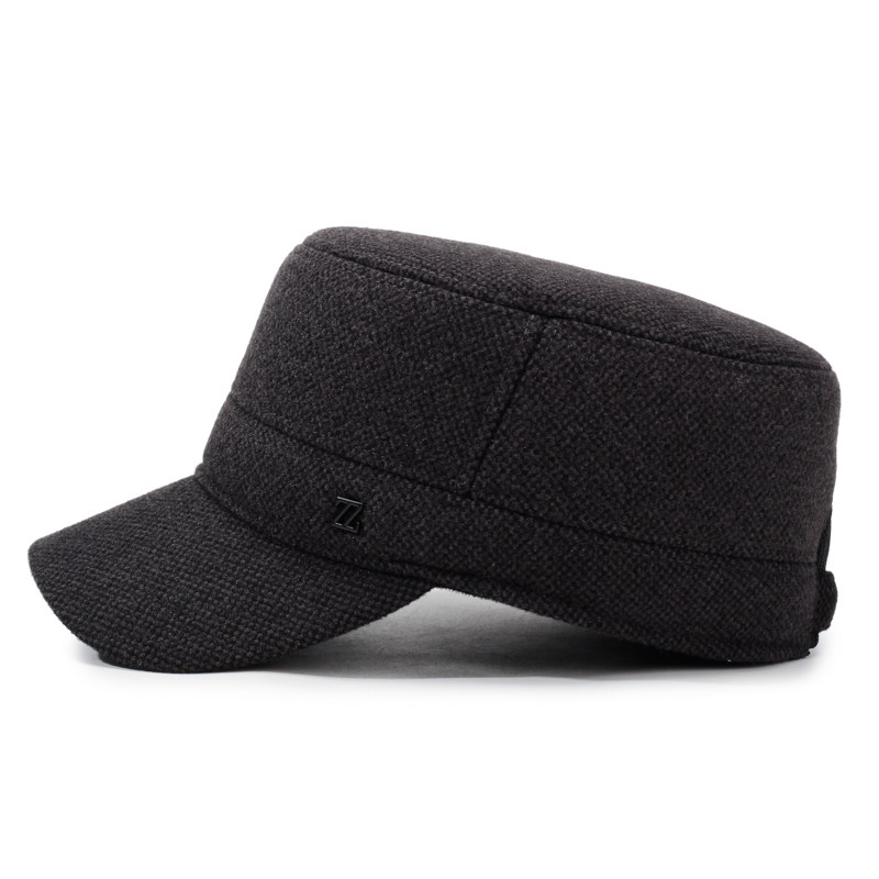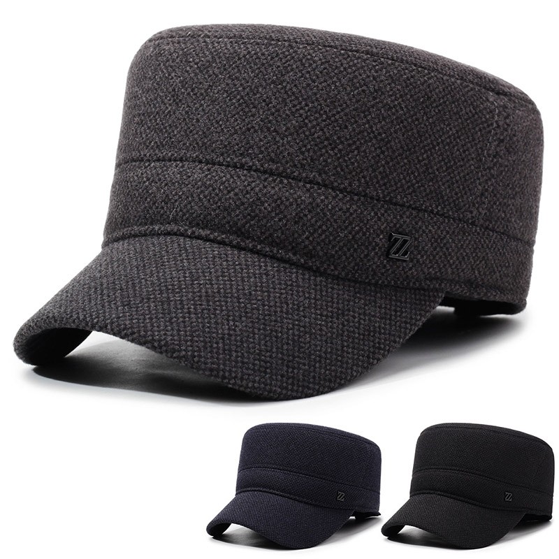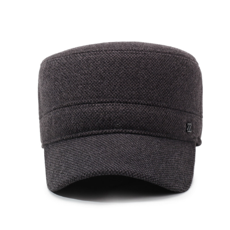 中老年人男士帽子秋冬季爸爸保暖平顶帽爷爷加绒鸭舌帽棉帽子毛呢