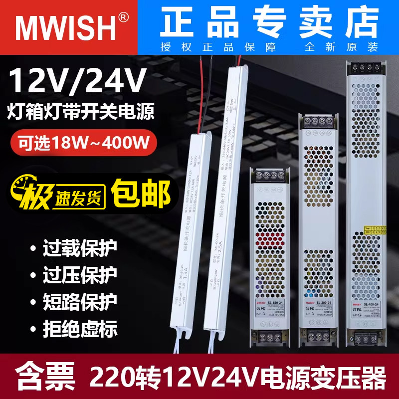深圳明伟LED超薄灯箱电源220转12V24V长条驱动电源灯带变压适配器