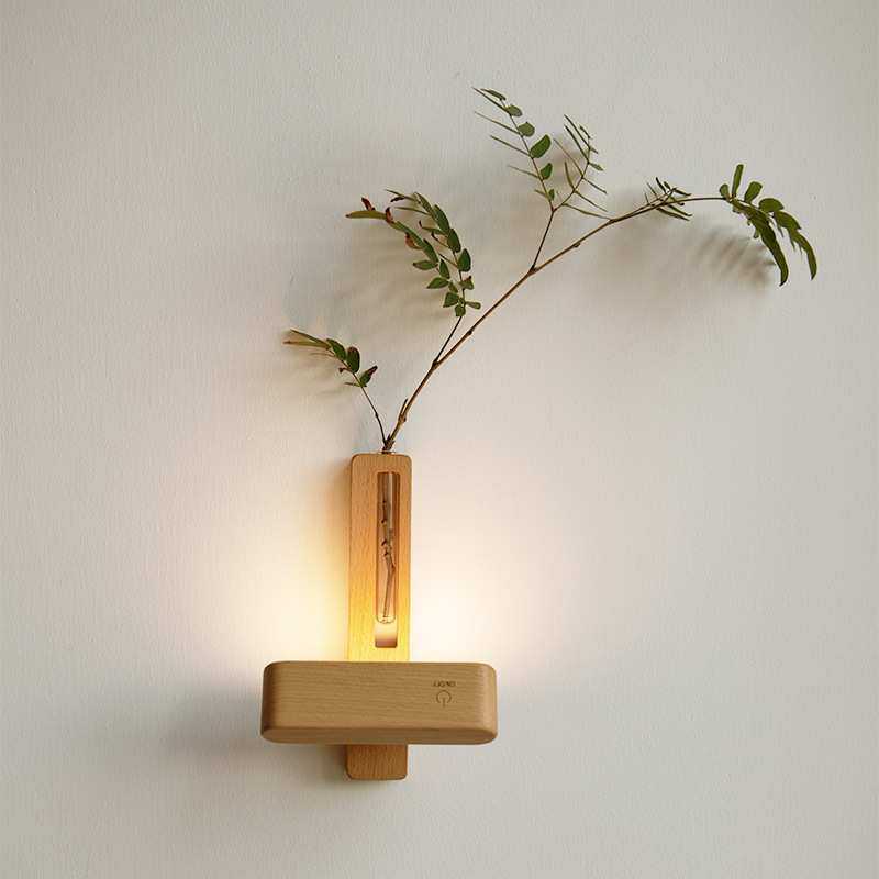 新款原木花道创意led花器灯免布线磁吸充电小夜灯客厅床头壁灯