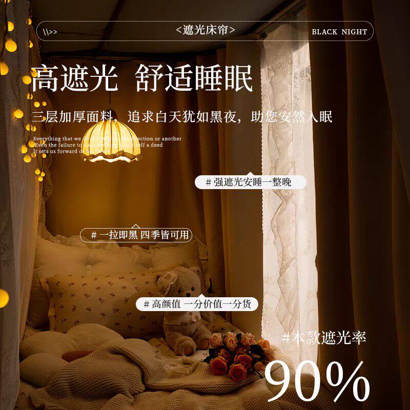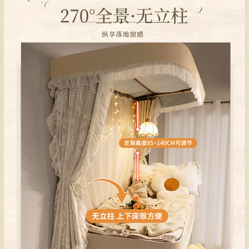法式全遮光u型轨道床帘公主风上铺滑轨式蚊帐学生宿舍窗帘下铺