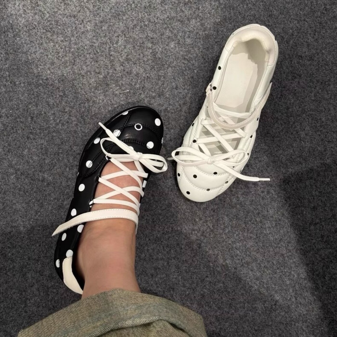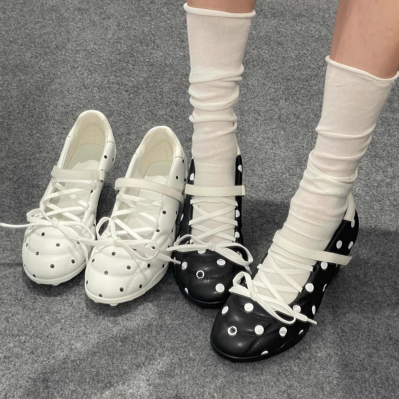 机能风波点玛丽珍鞋女2026新款绑带圆头中跟芭蕾单鞋配裙子高跟鞋