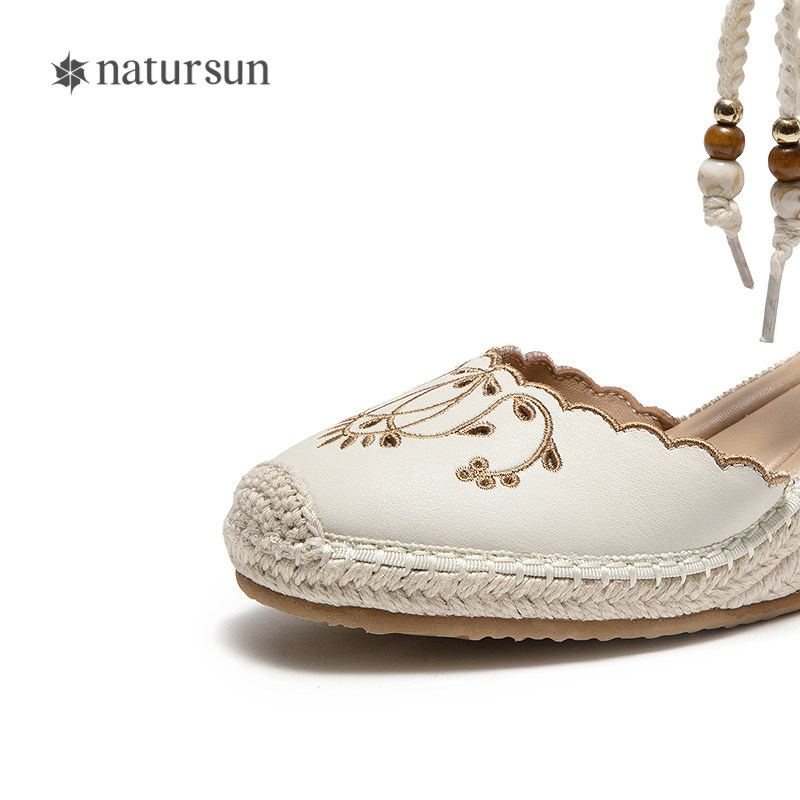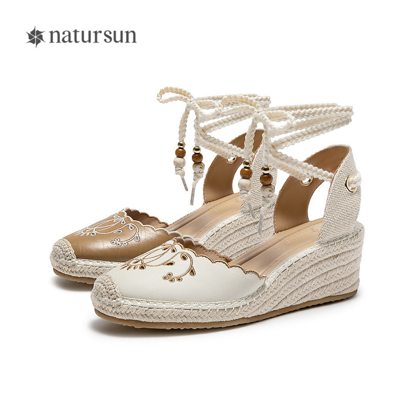 natursun羊里软垫坡跟休闲渔夫鞋2026新款夏季女鞋民族风高跟单鞋
