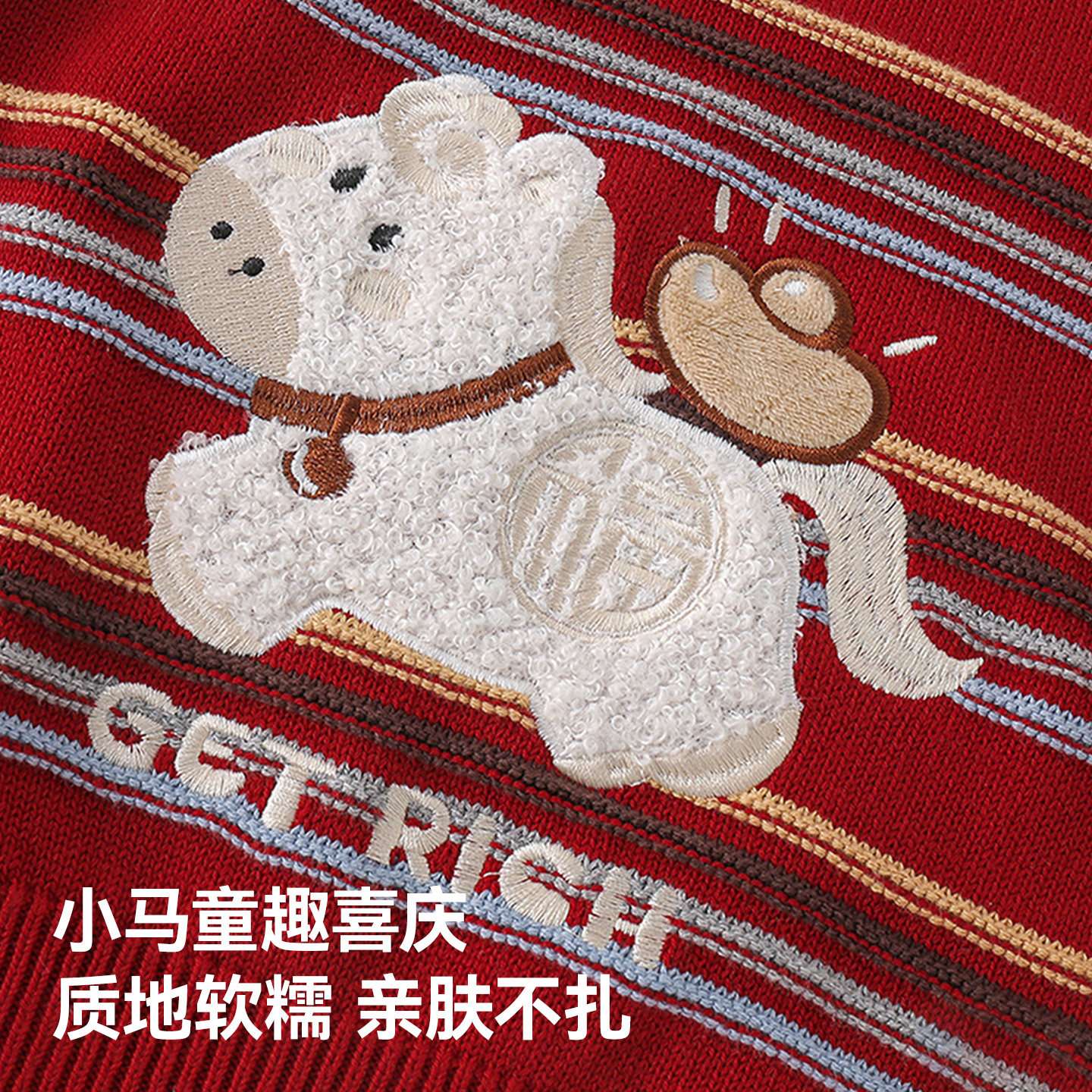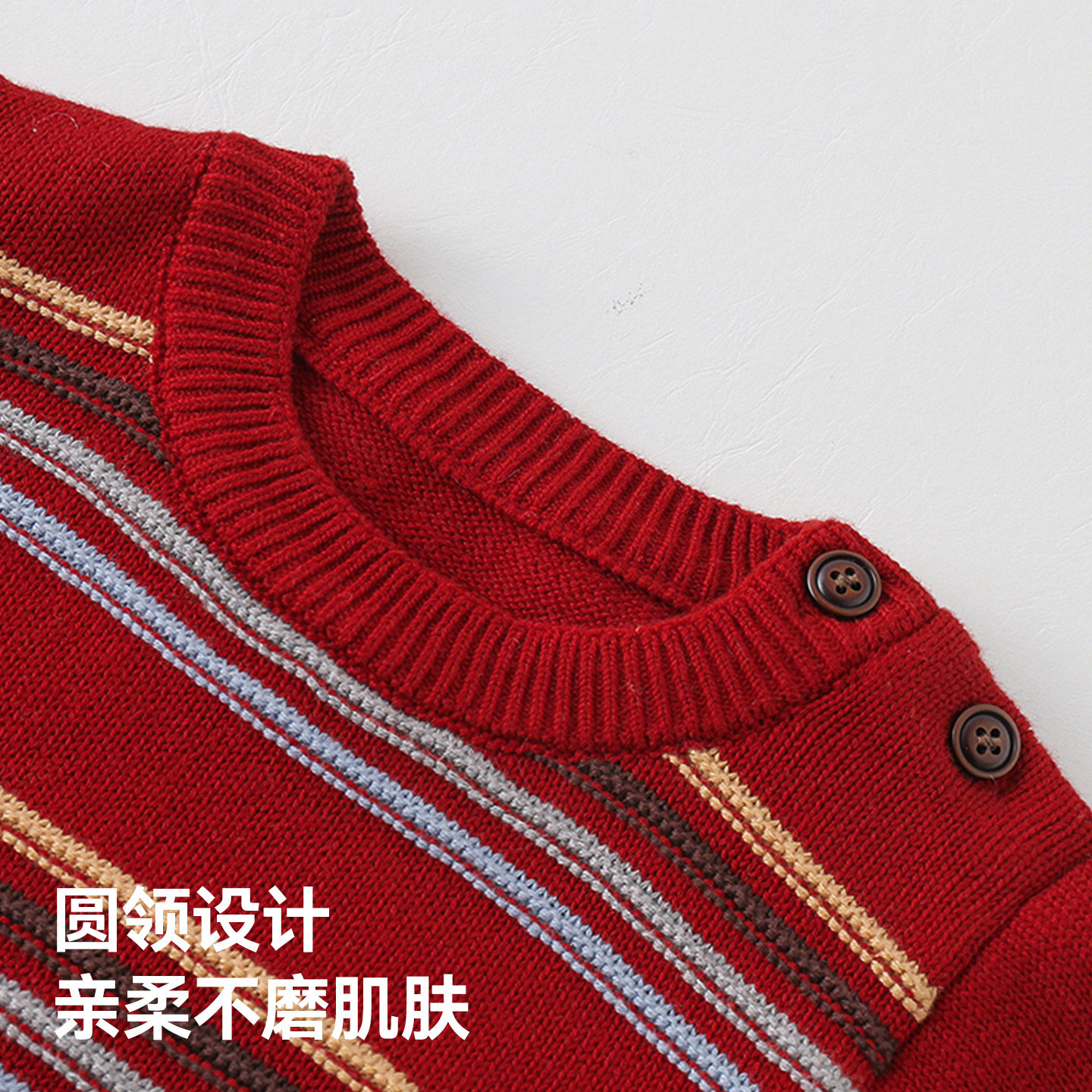 贝肽斯儿童毛衣加厚针织衫秋冬女童男童红色毛衣新年宝宝毛线衣S